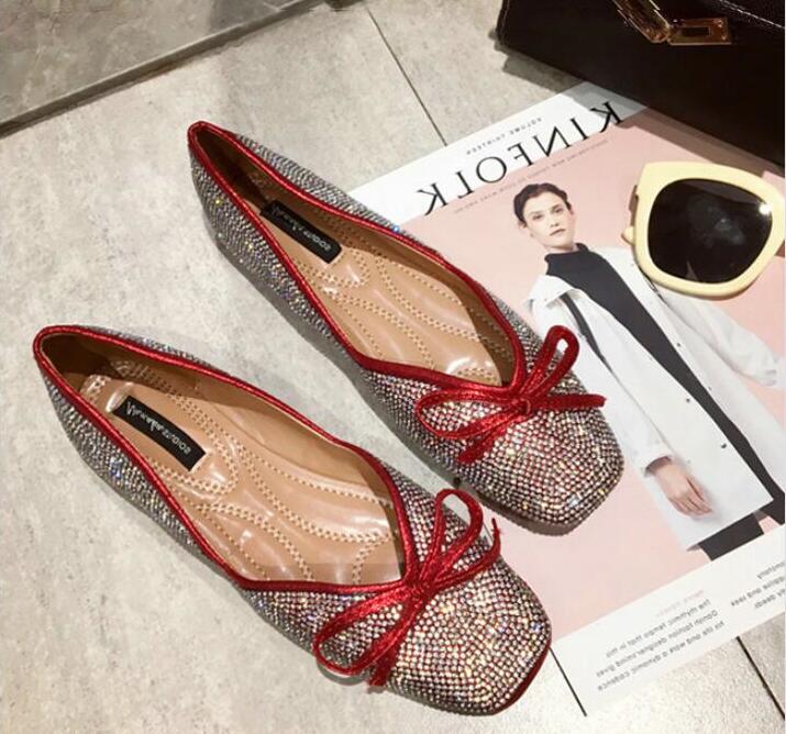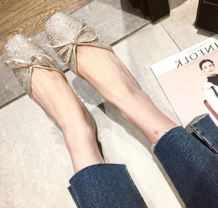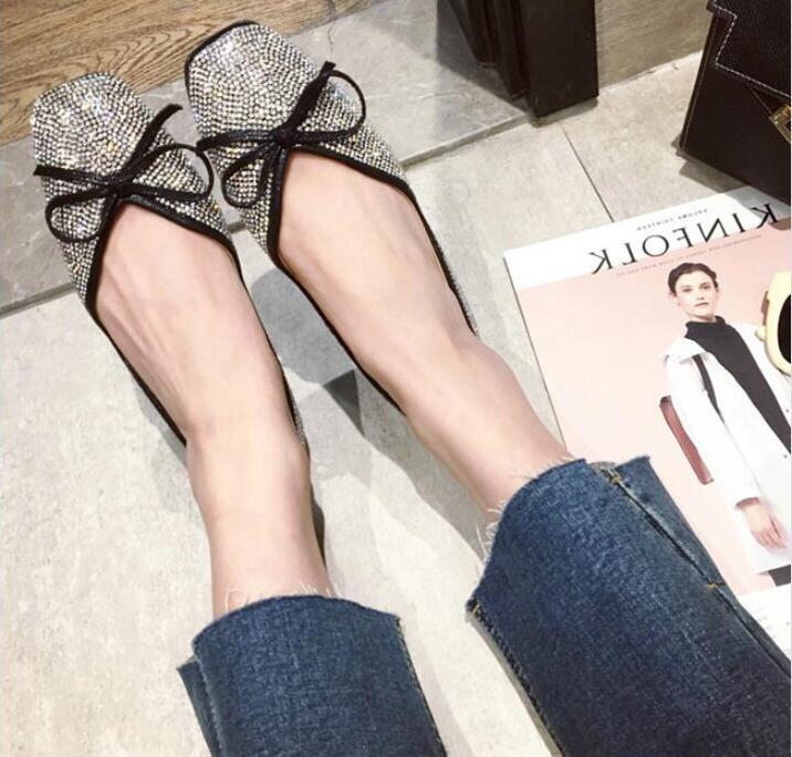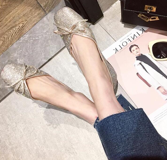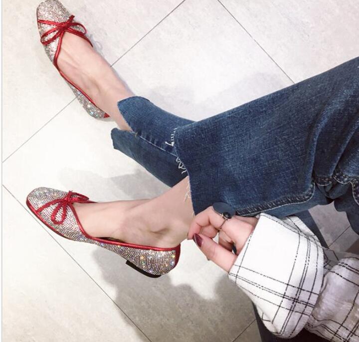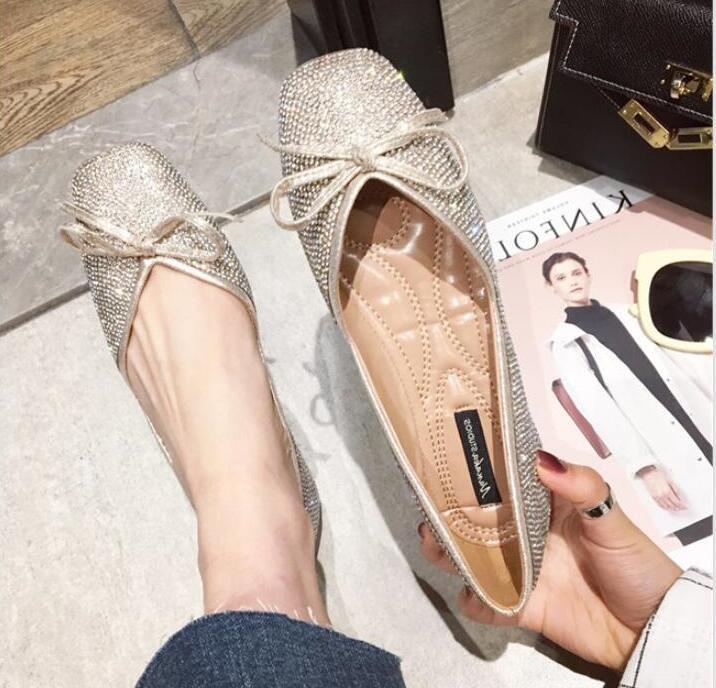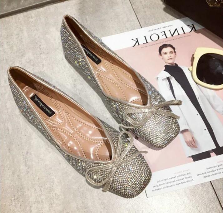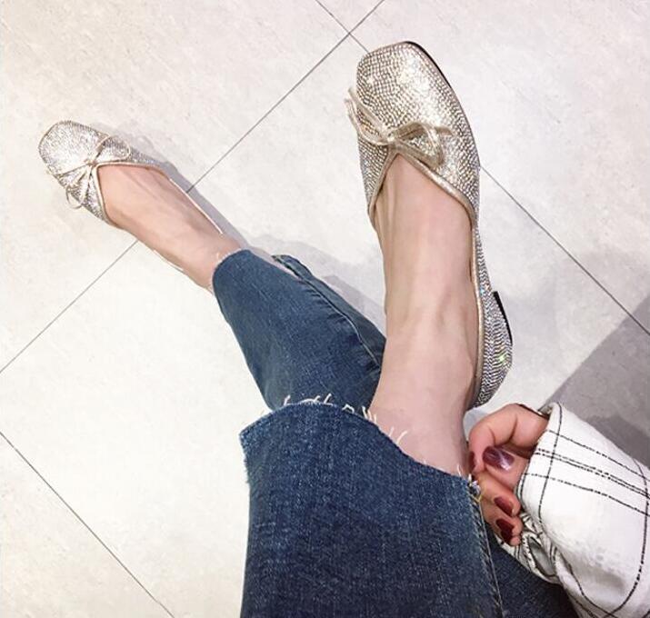 ラインストーンパンプス フラットシュー