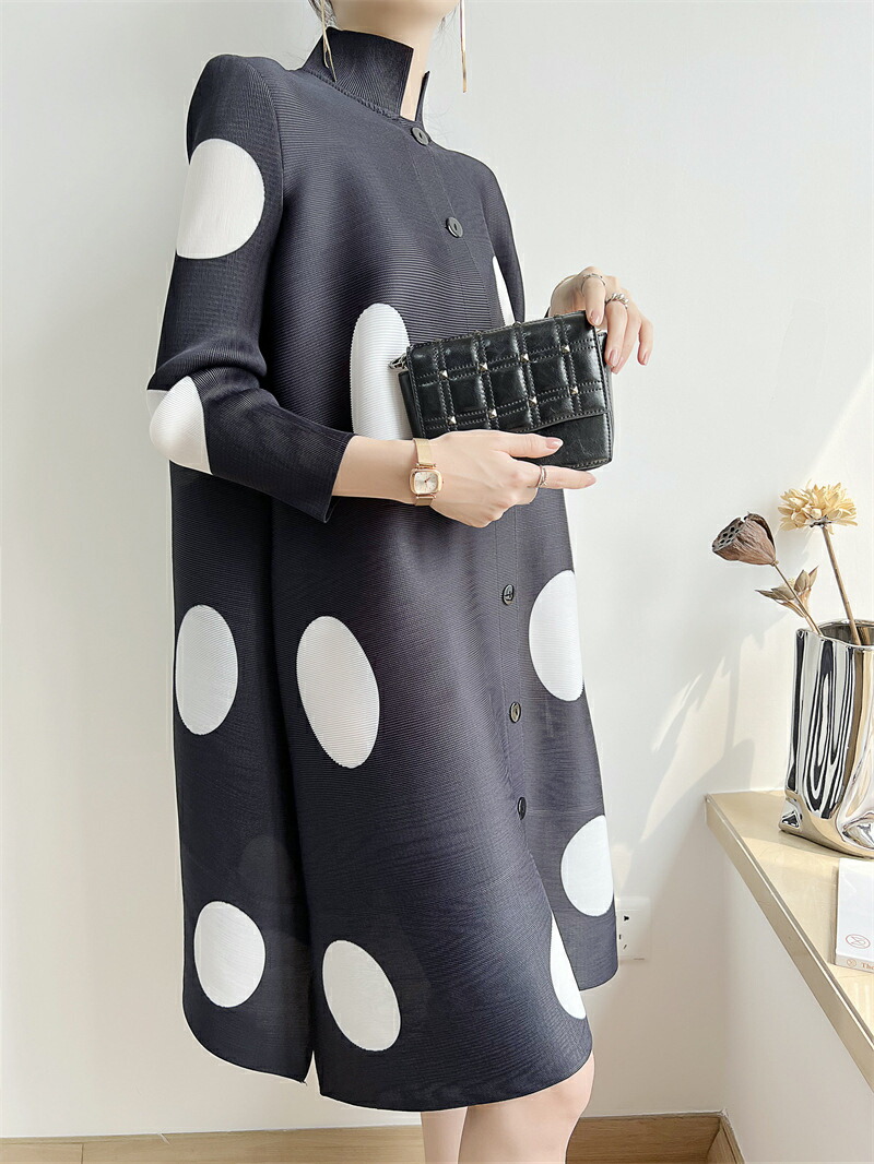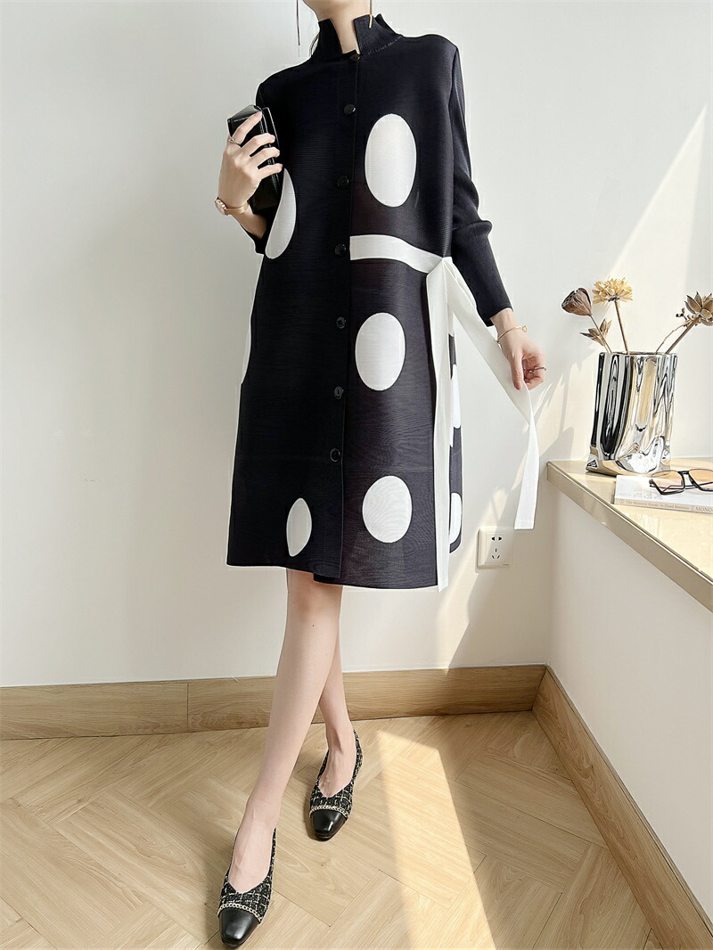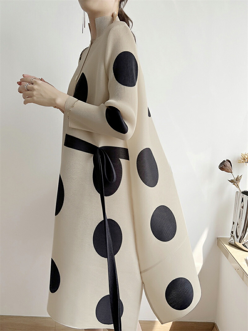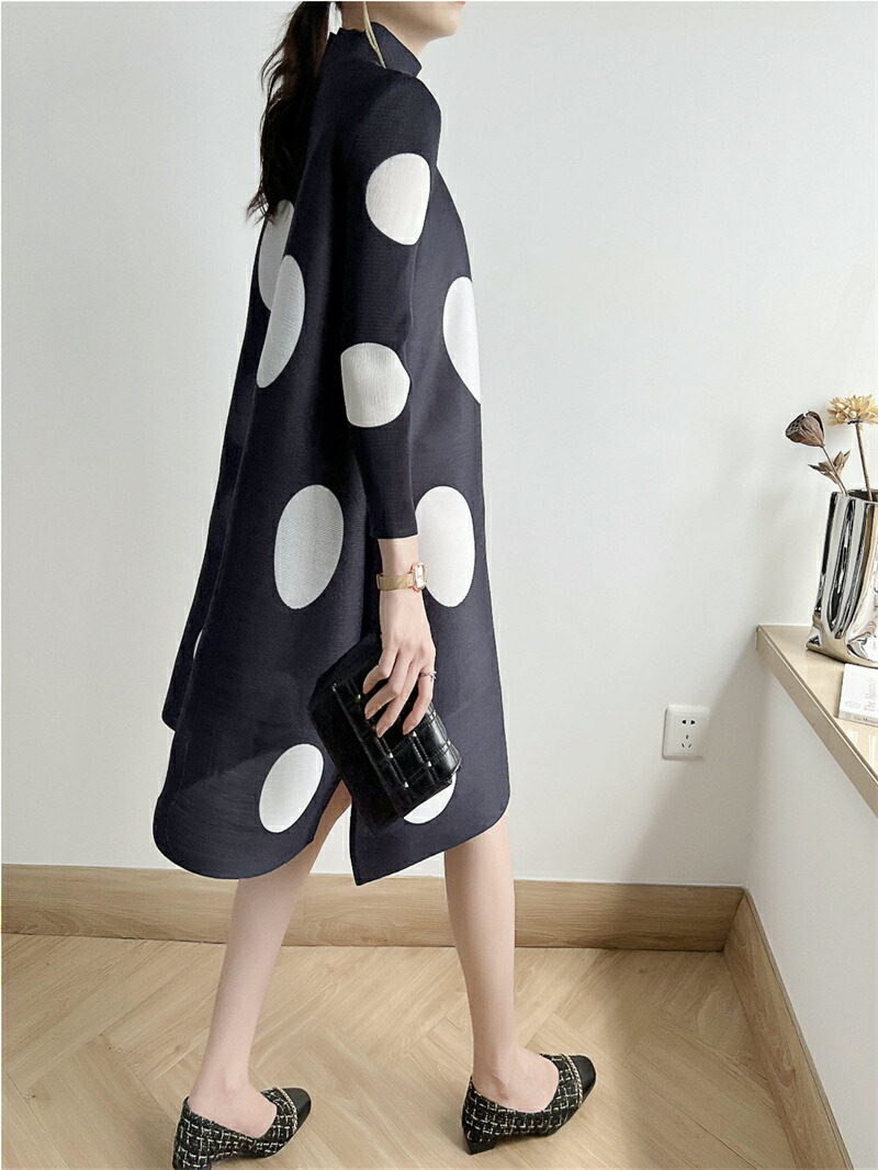 大きなドット柄が目を惹く、華やかで上品なワンピース ゆったりとしたスタイリッシュなデザインが体型カバーにもなる魅力的なアイテム♪