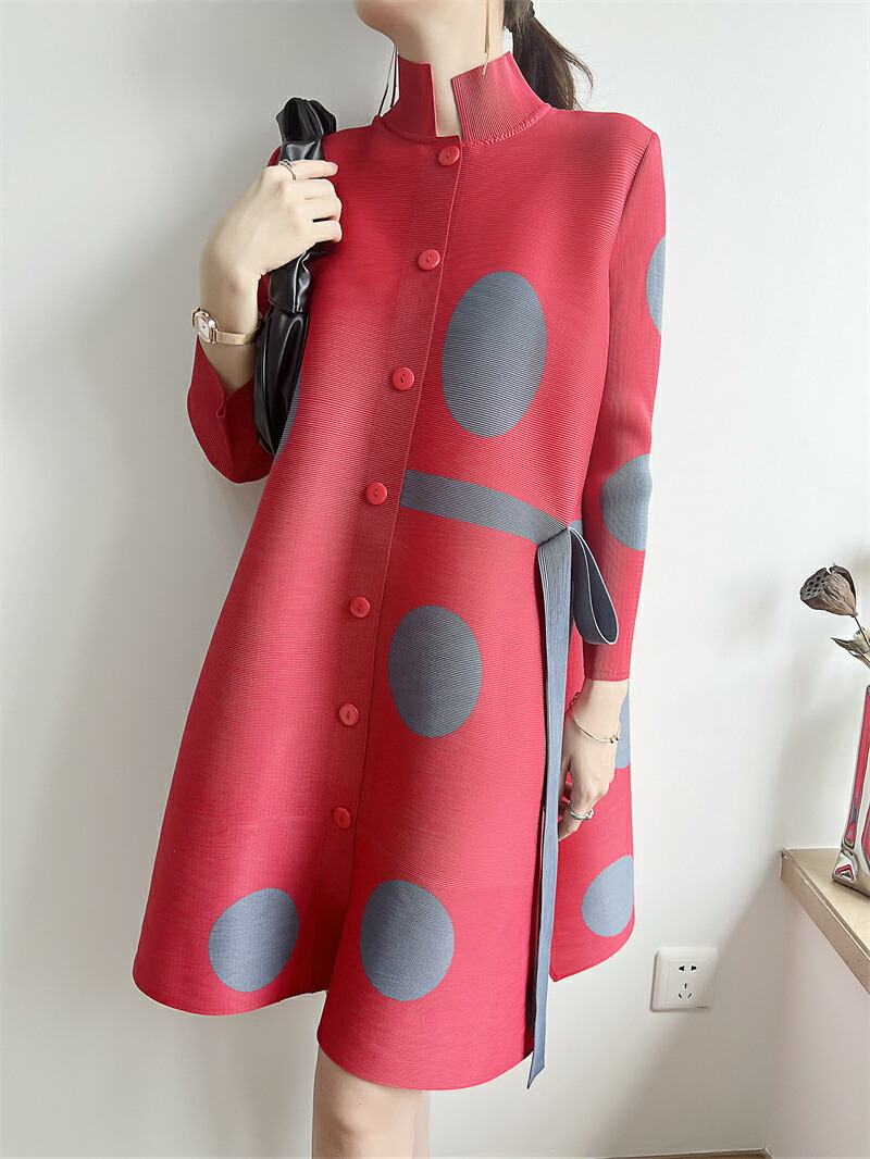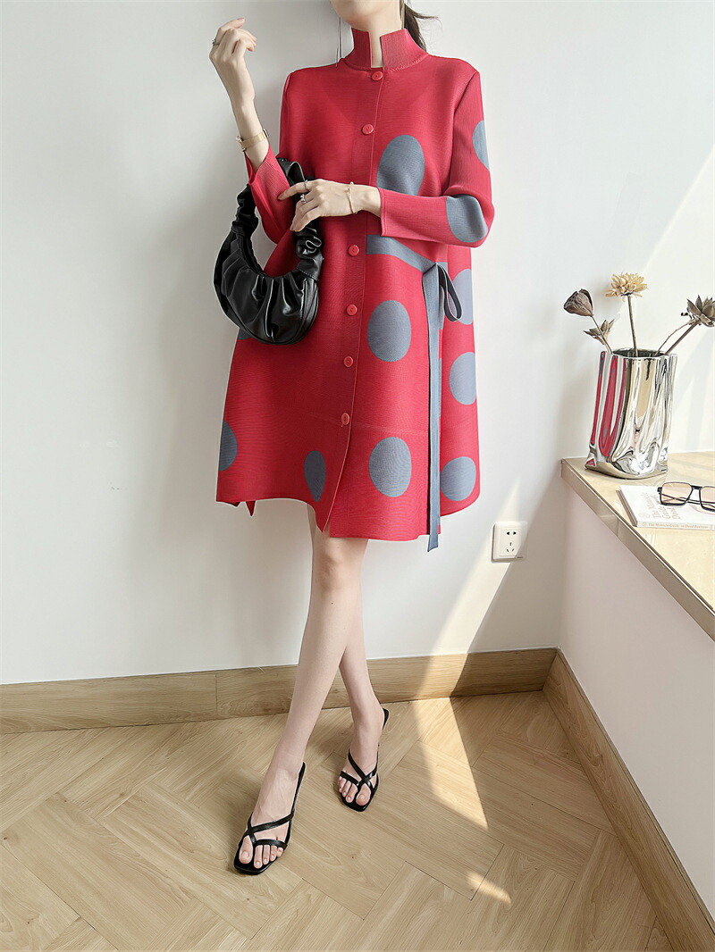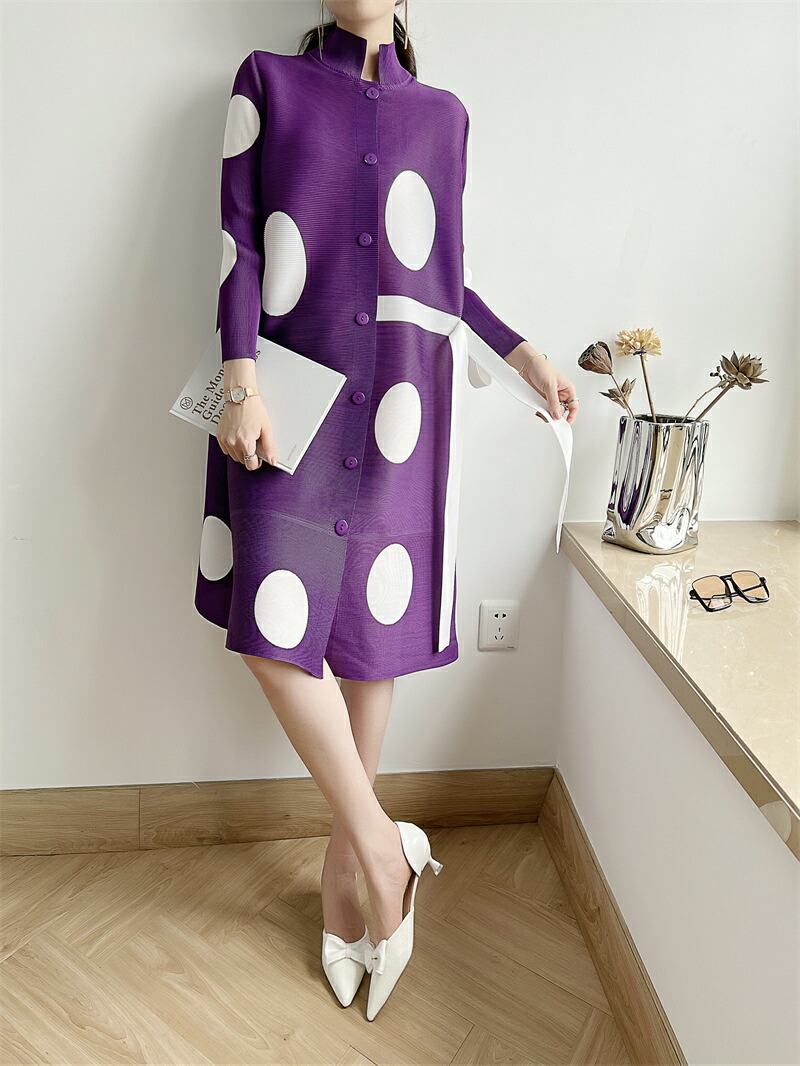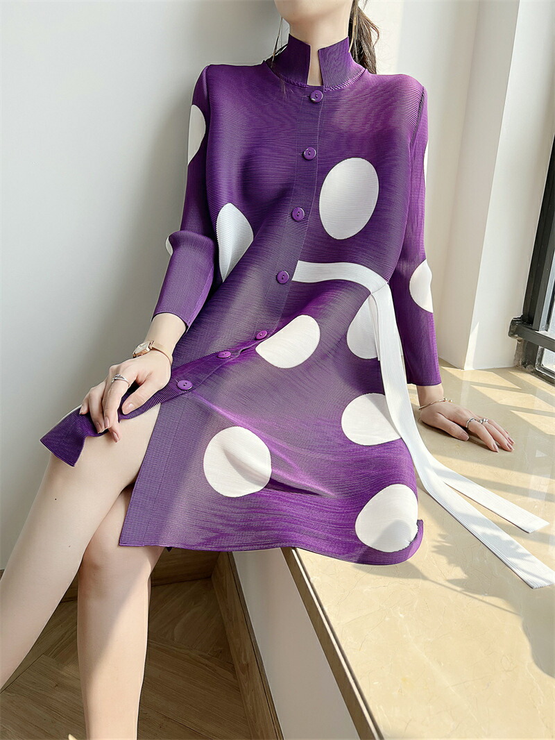 大きなドット柄が目を惹く、華やかで上品なワンピース ゆったりとしたスタイリッシュなデザインが体型カバーにもなる魅力的なアイテム♪