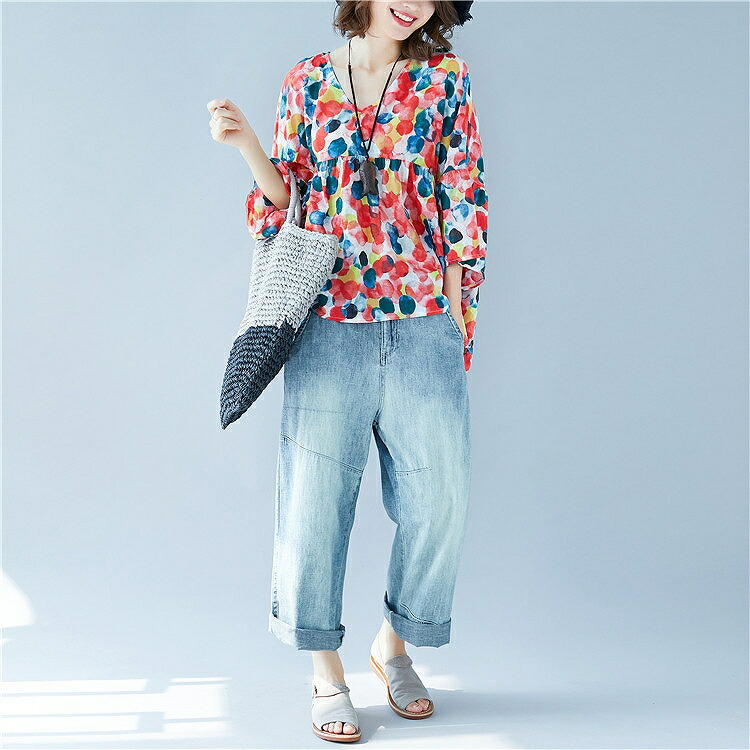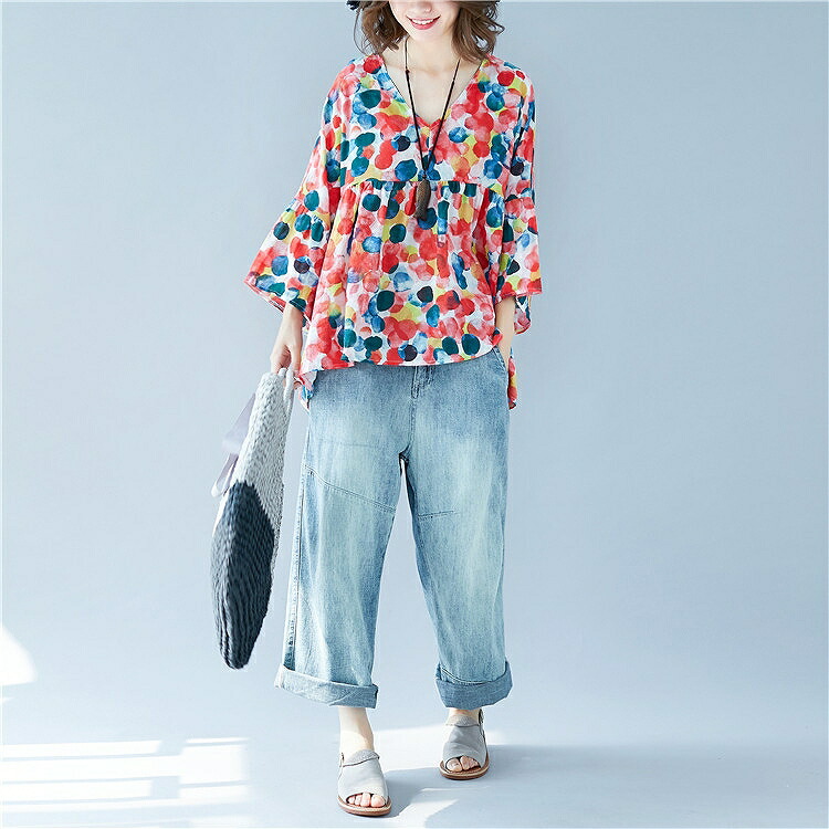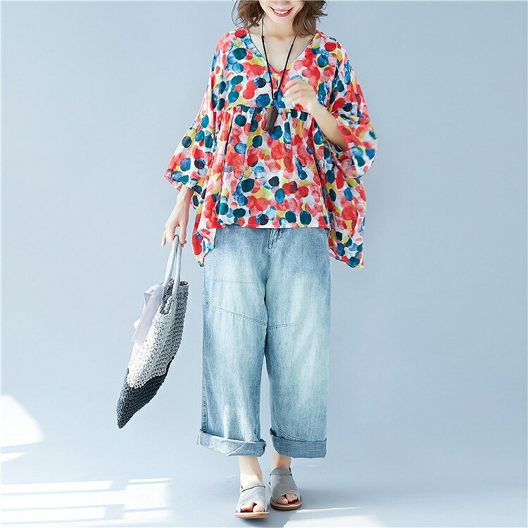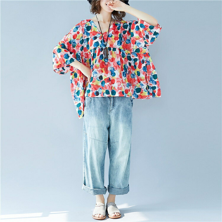 着るだけでハッピー気分になれる華やかなカラーリング♪ゆったりラフに着こなすデイリーコーデレディースファッション トップス シャツ ブラウス