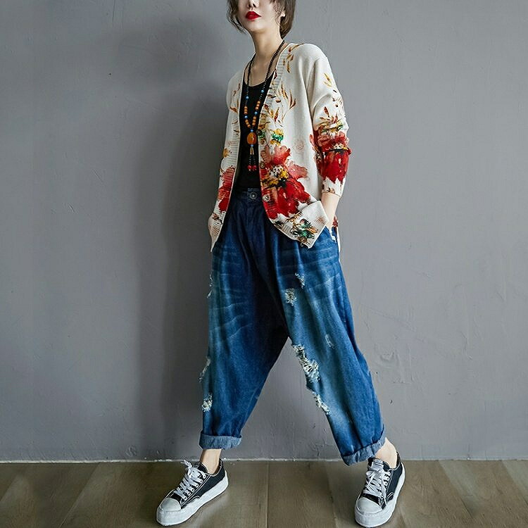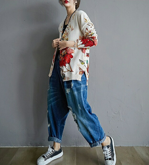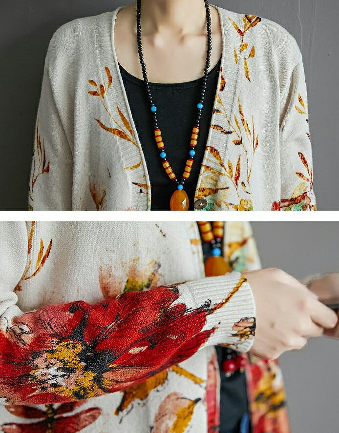まるで絵画のような花柄カーディガン 気