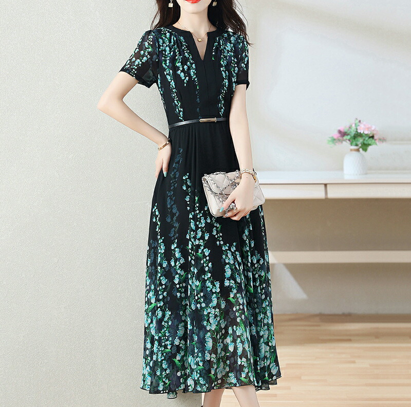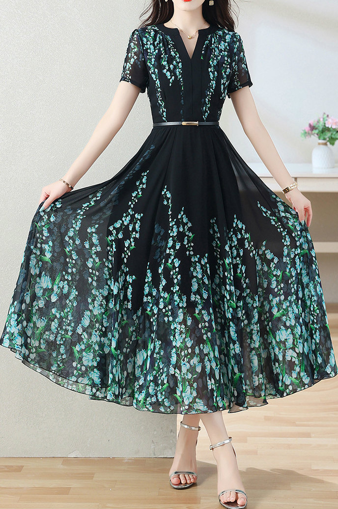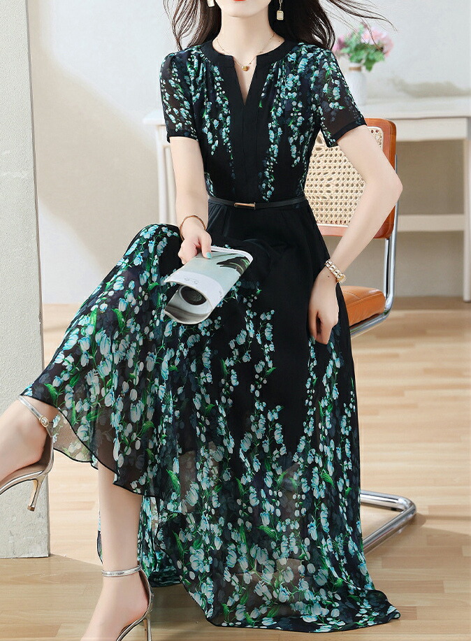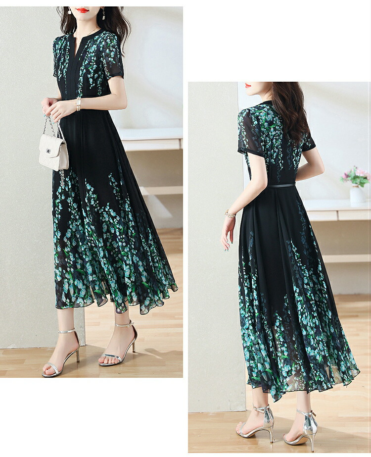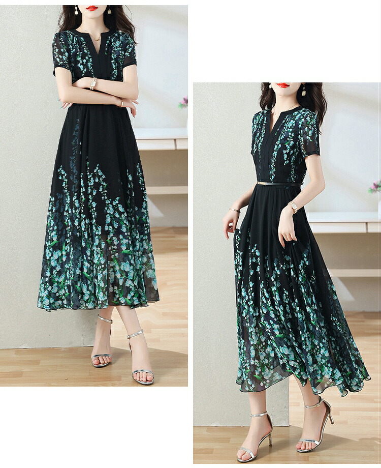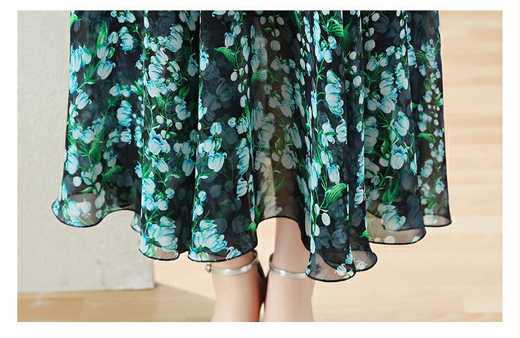 鮮やかな花柄とシースルーデザインの涼し気スタイル♪スリットカラーとフレアシルエットが上品かつエレガントな印象を与えます