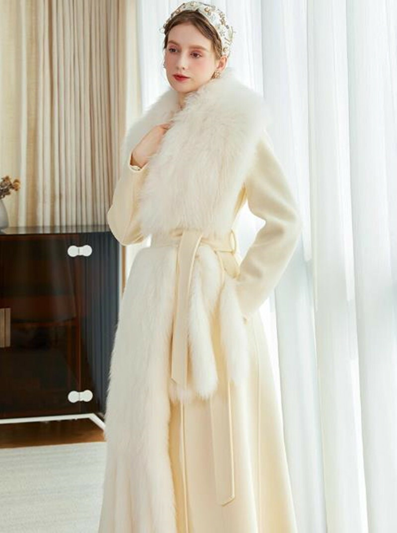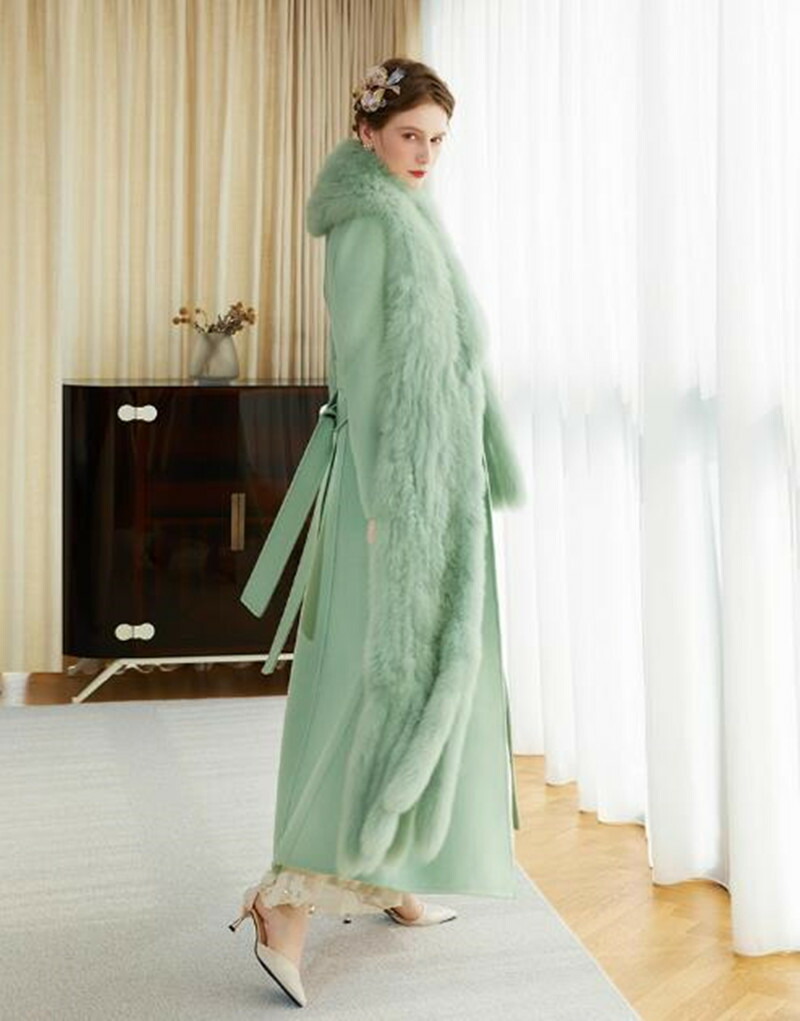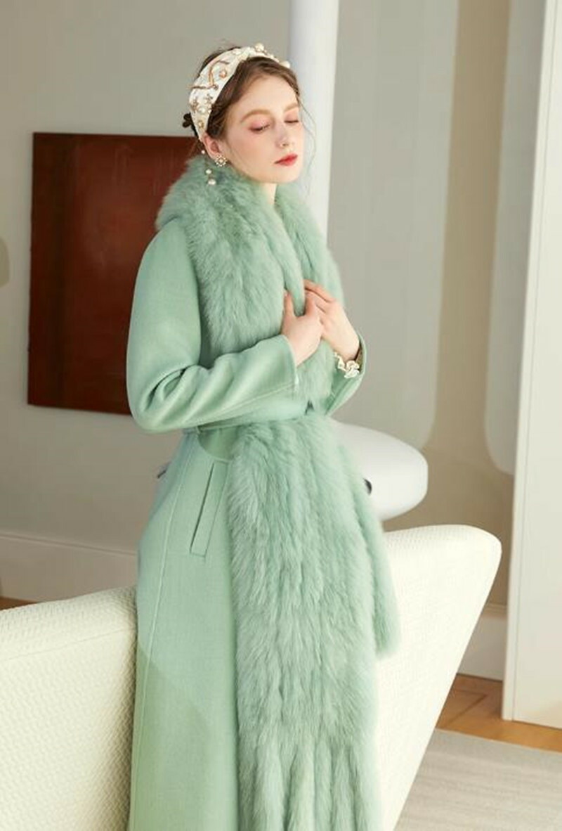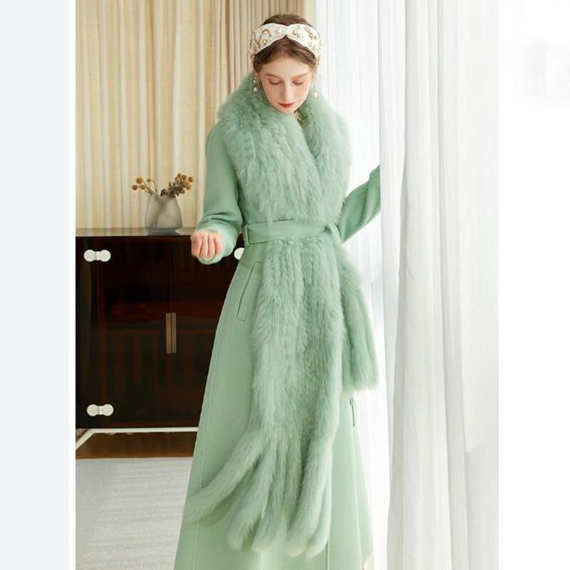 ウールコート レディース フォックスファー コート高級感MAX リアルファー ロング ロングコート 贅沢 お洒落 大きいサイズ かわいい おしゃれ きれいめ 緑 白 冬 秋 通勤 シンプル 暖かい ア