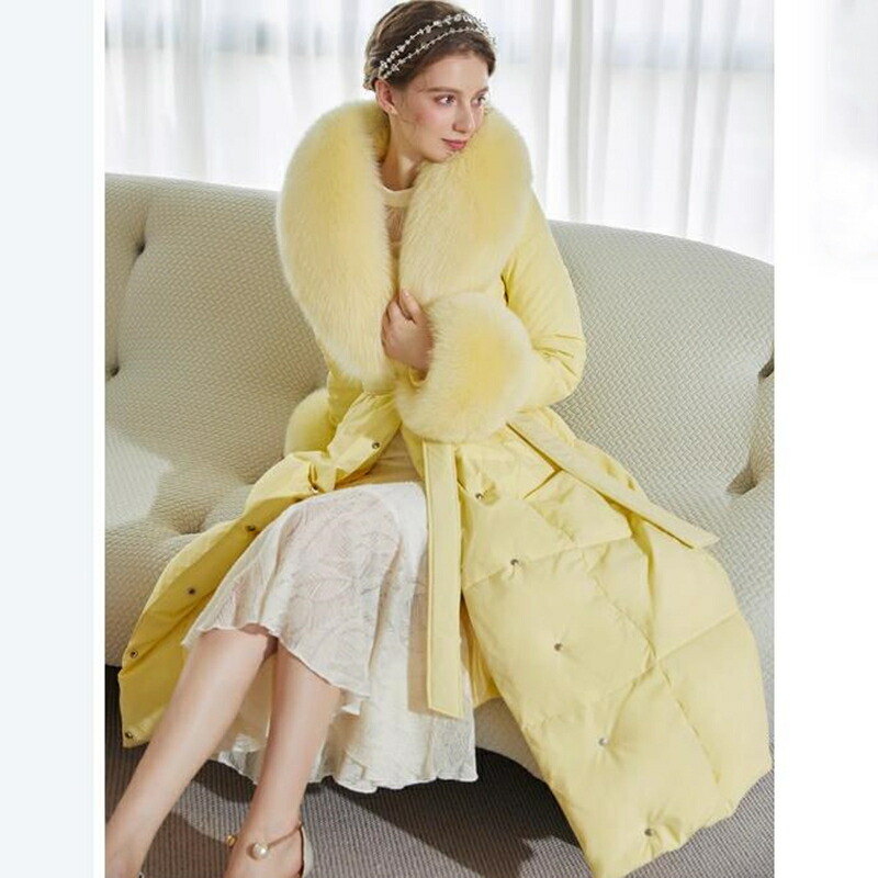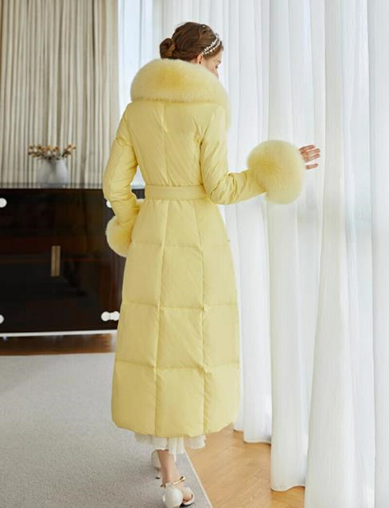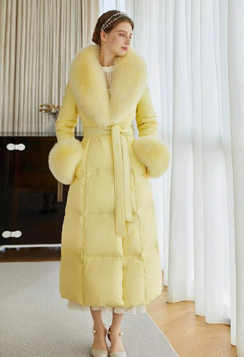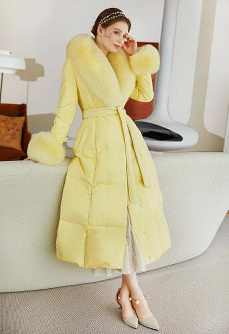 レディース ダウンコート フォックスファー 高級感MAX ロング コート ロングコート 贅沢 大きいサイズ お洒落 かわいい おしゃれ きれいめ 冬 秋 イエロー 通勤 シンプル 暖かい アウター コ
