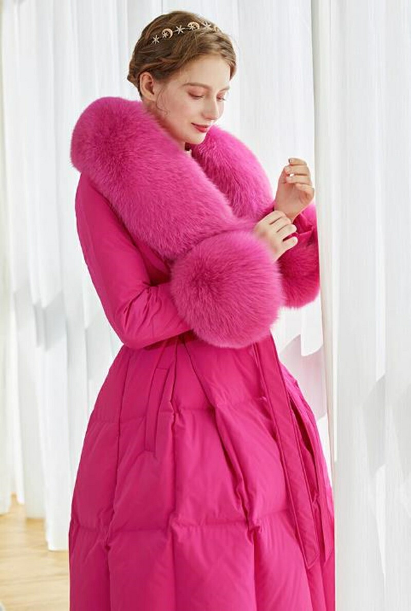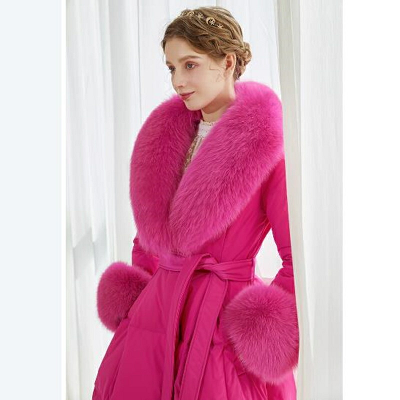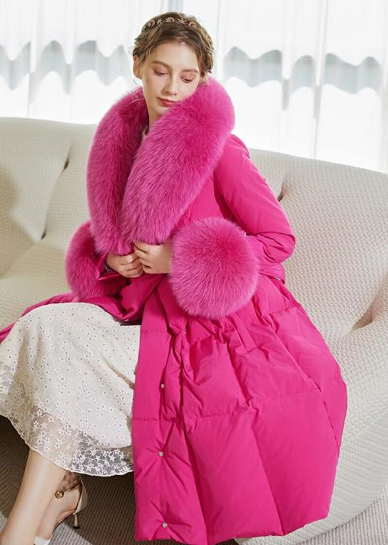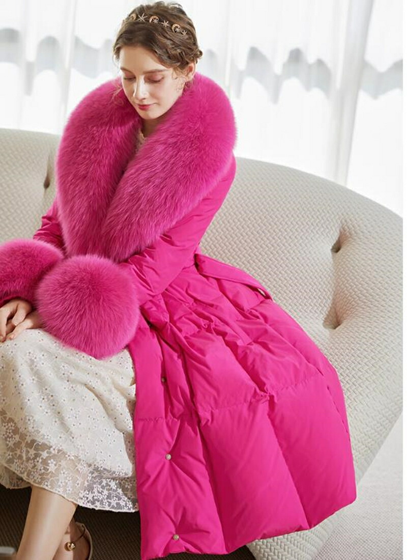 レディース ダウンコート フォックスファー 高級感MAX ロング コート ロングコート 贅沢 大きいサイズ お洒落 かわいい おしゃれ きれいめ 冬 秋 ピンク 通勤 シンプル 暖かい アウター コー
