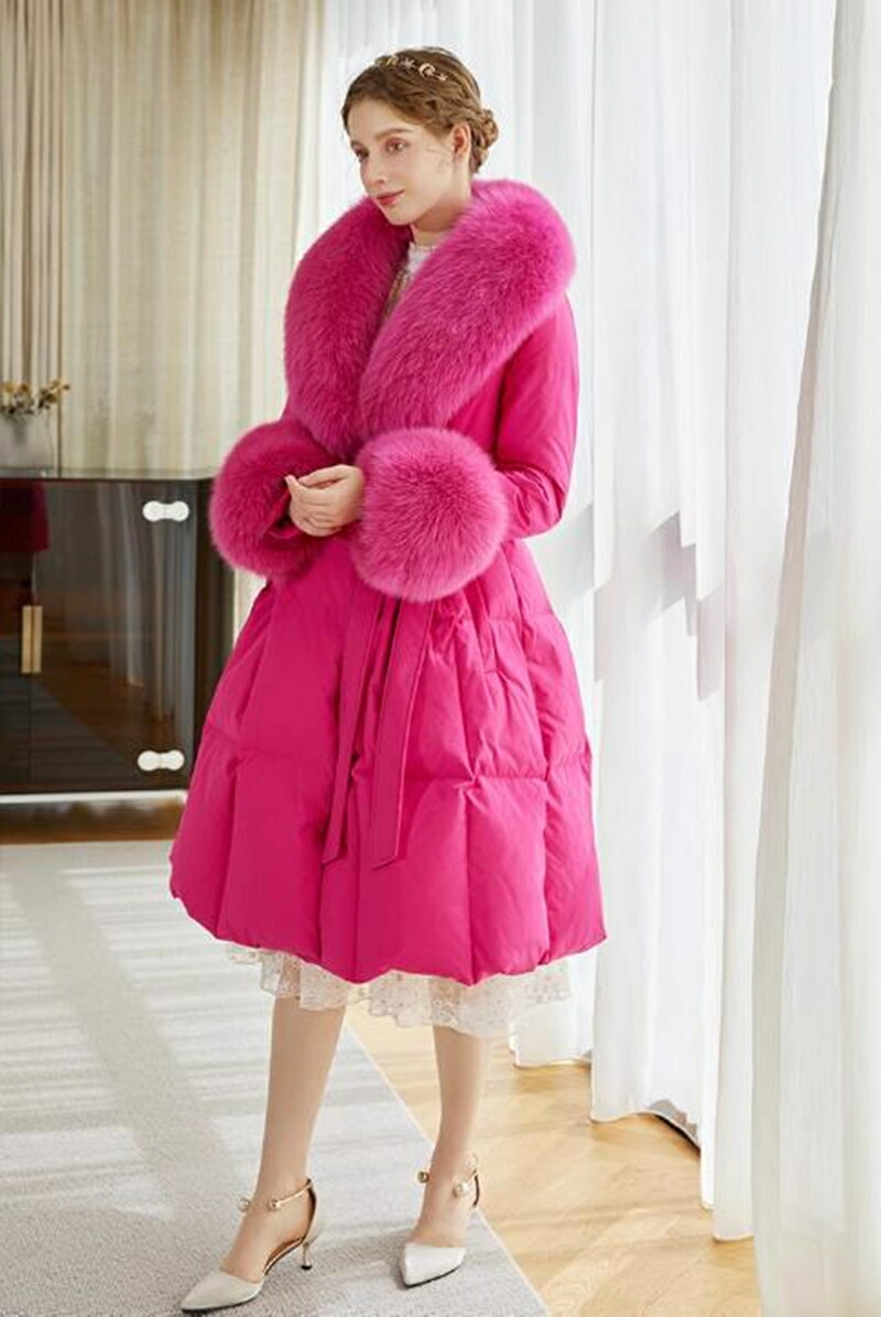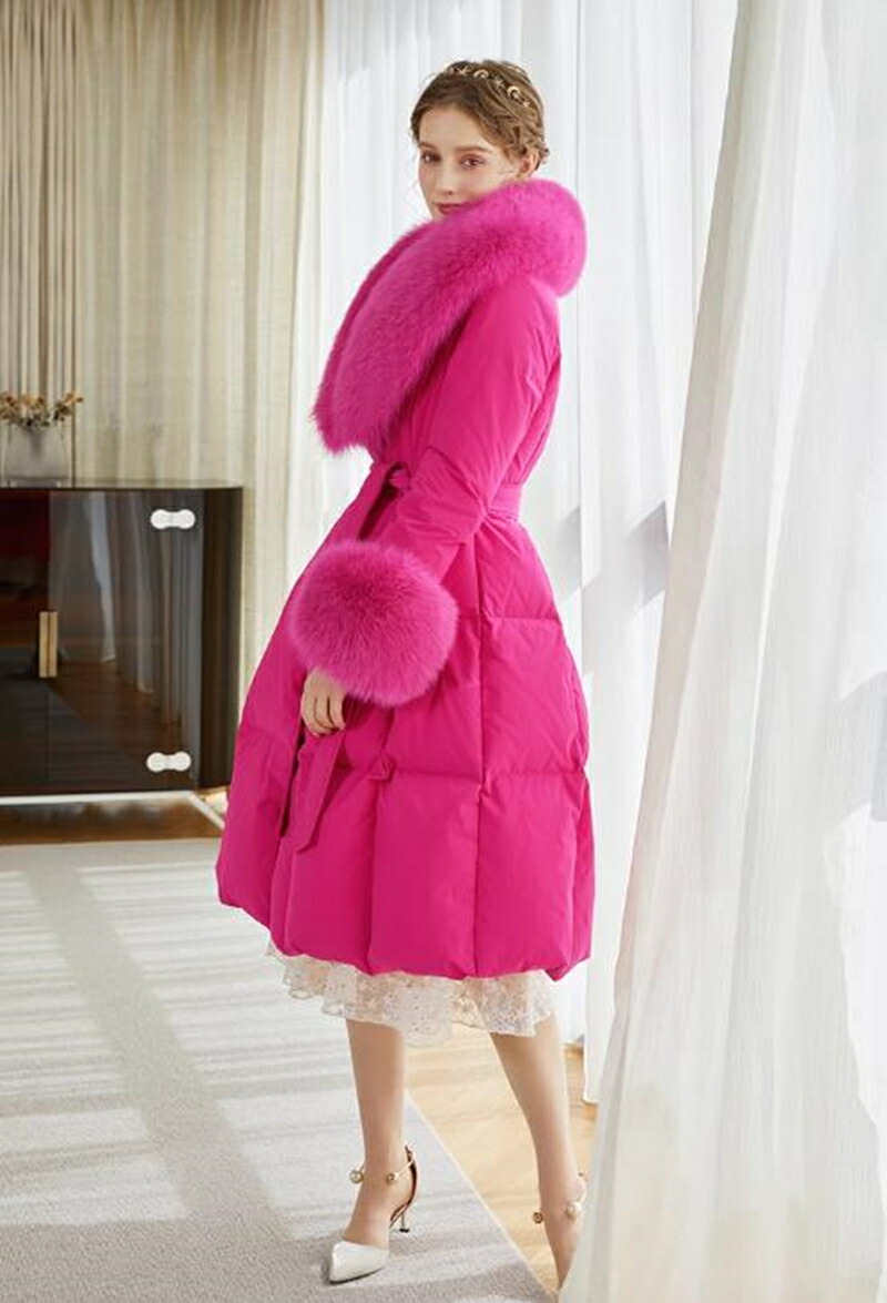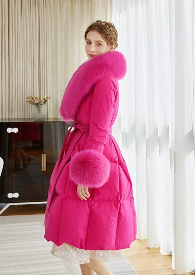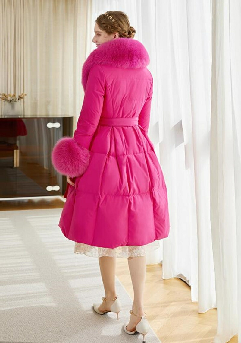 レディース ダウンコート フォックスファー 高級感MAX ロング コート ロングコート 贅沢 大きいサイズ お洒落 かわいい おしゃれ きれいめ 冬 秋 ピンク 通勤 シンプル 暖かい アウター コー