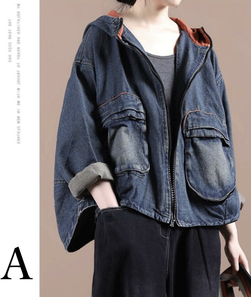 パーカー レディース デニム デニムパーカー 長袖 トップス ジップアップ フード付き 大きいサイズ 切り替え 異素材 羽織 おしゃれ 紐 可愛い きれいめ 素敵 楽ちん ファッション コーデ 通学