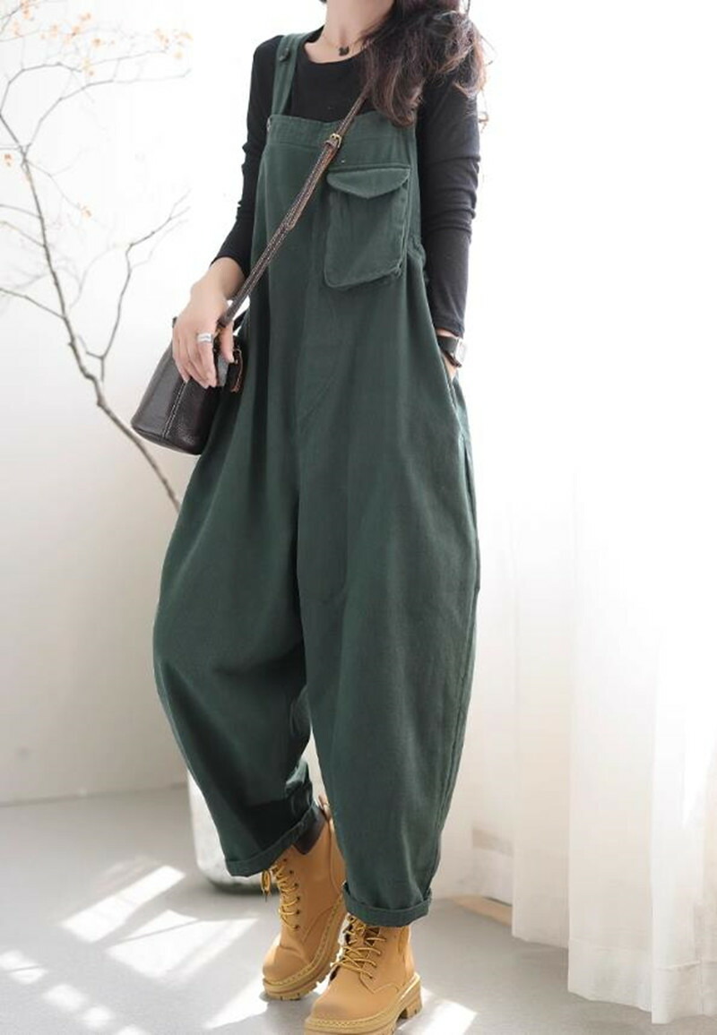 オーバーオール レディース サロペット パンツ 可愛い ポケット ポッケ 秋 春 冬 夏 カジュアル ゆったり おしゃれ ミセス 休日 母親 個性的 ママ ラフ お出かけ ファッション 緑 カーキー
