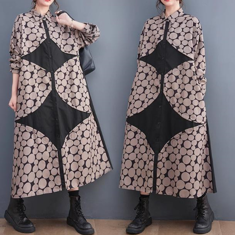 シャツワンピース レディース 長袖 水玉ドット 秋 冬 春 夏 きれいめ 上品 きれいめ 大人かわいい通勤 オフィス お出かけ デートコーデ 旅行 お呼ばれ 30代 40代 50代 60代 70代 [