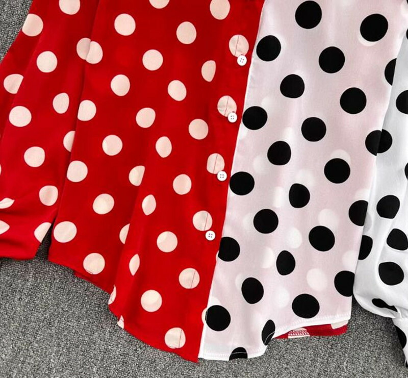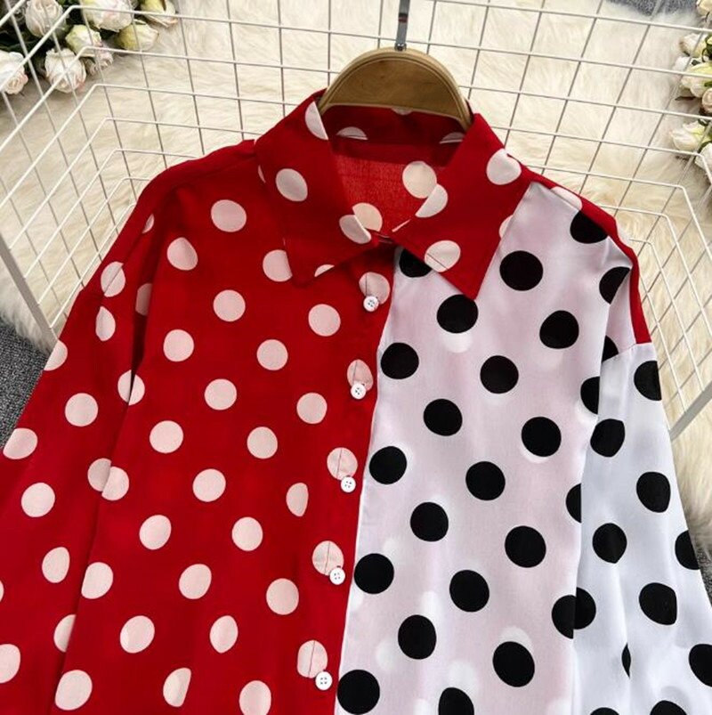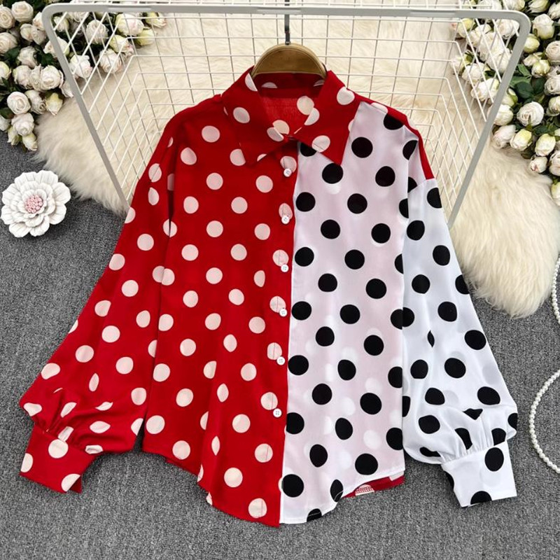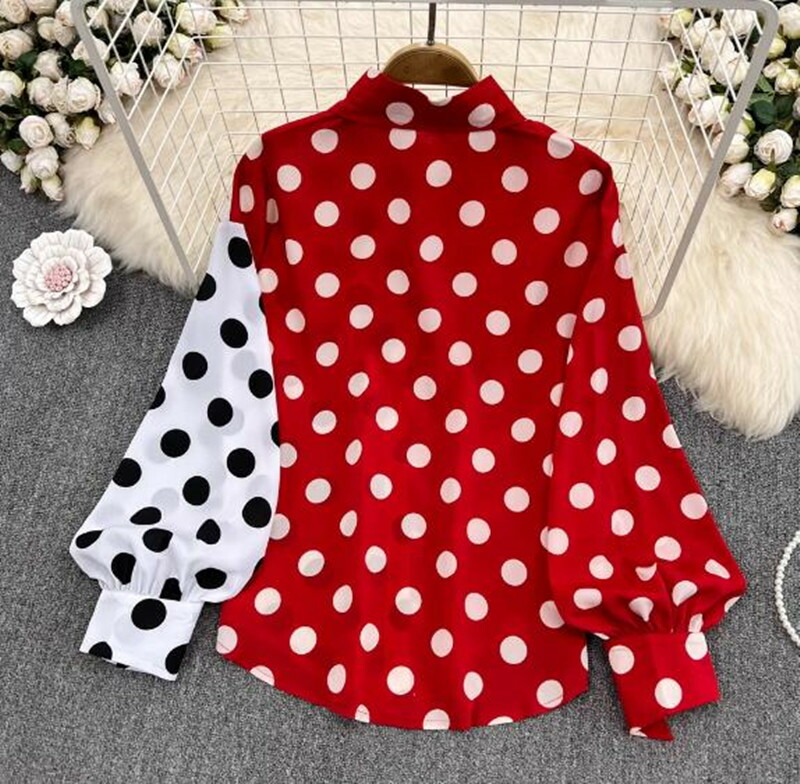 シャツ レディース 長袖 水玉ドット 秋 冬 春 夏 きれいめ 上品 きれいめ 大人かわいい通勤 オフィス お出かけ デートコーデ 旅行 お呼ばれ レッドブラック 30代 40代 50代 60代 70