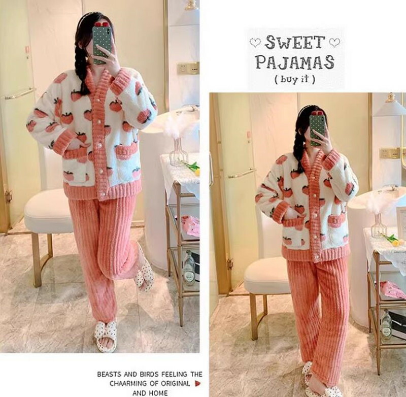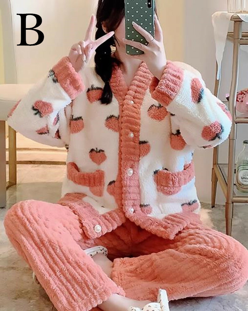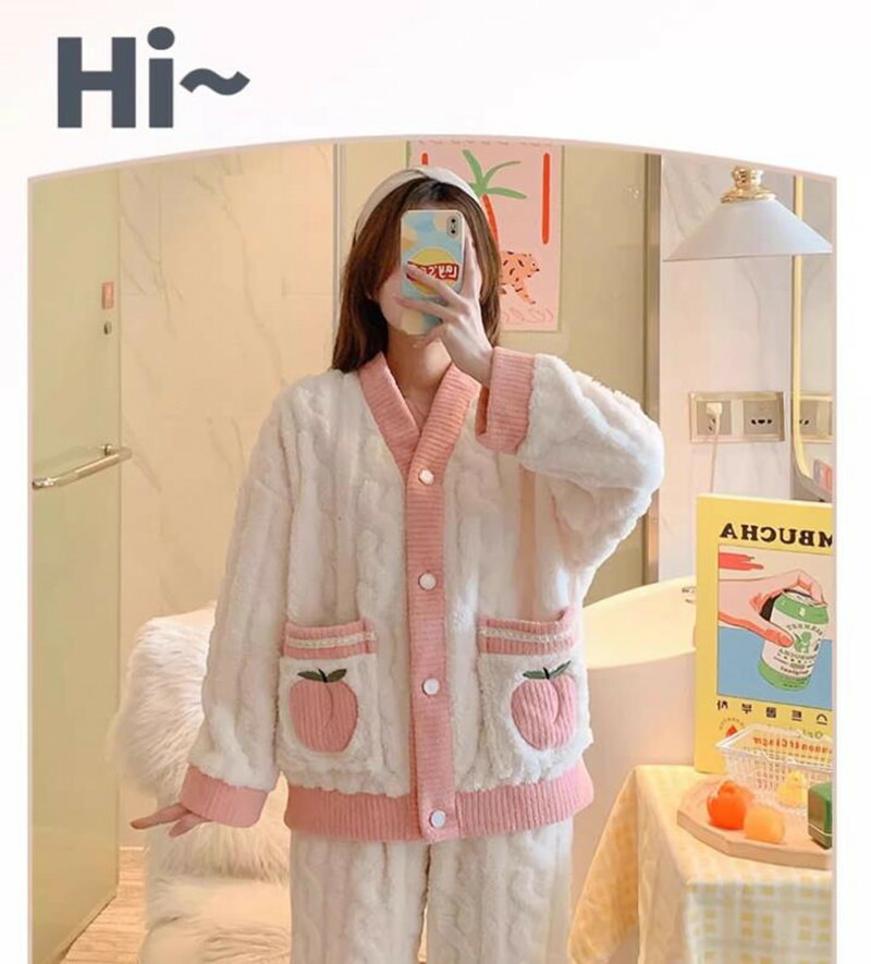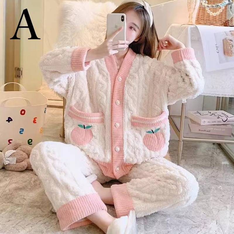 レディース パジャマ ルームウェア ナイトウェア 長袖 セクシー かわいい もこもこ ふわふわ 暖かい 上下セット 秋 冬 トレーナーパンツ ボタン 大きいサイズ おうち時間 ウエストゴム 上下違う