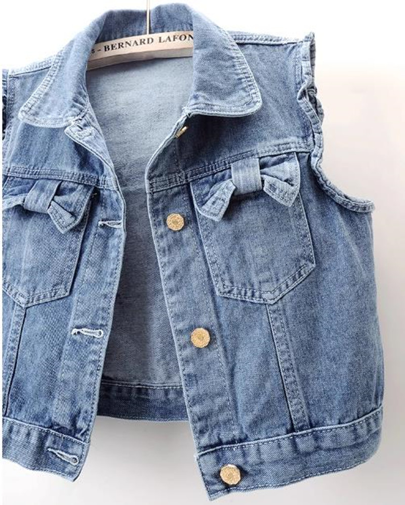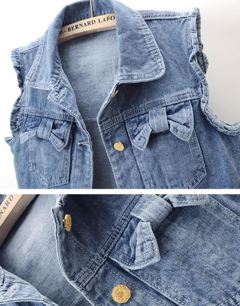 ベスト レディース デニムベストジレ デニムブルゾン トップス ズ リボン 羽織 おしゃれ 可愛い きれいめ 素敵 楽ちん ファッション コーデ 通学 通勤 秋 冬お洒落 [vaa50]