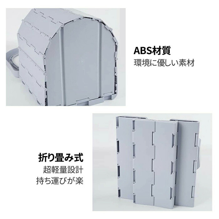 防災グッズとして活躍する便利な簡易トイレは、避難所や自宅、テントの中など様々な場所に簡単に設置することができます。素 材 ABS生産国 中国参考サイズ 折りたたみ前のサイズ:33cm×28cm×30cm