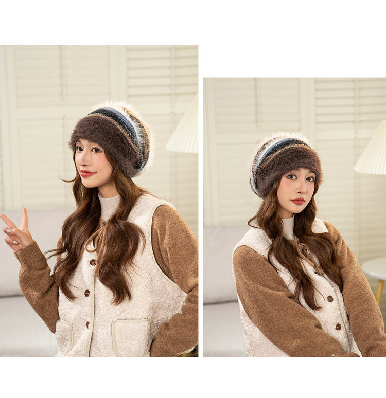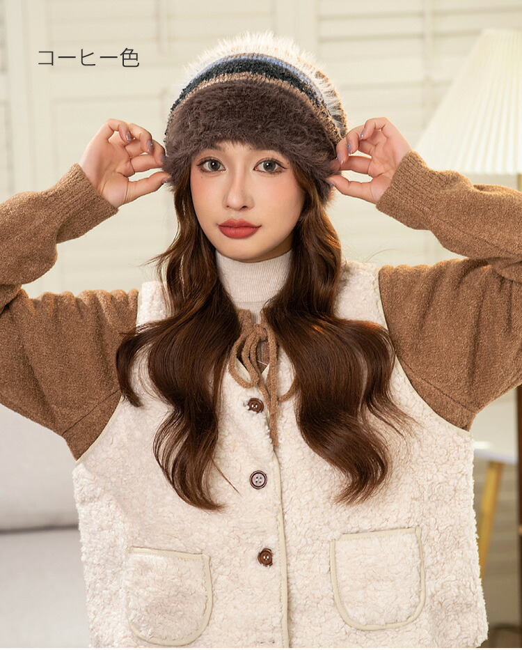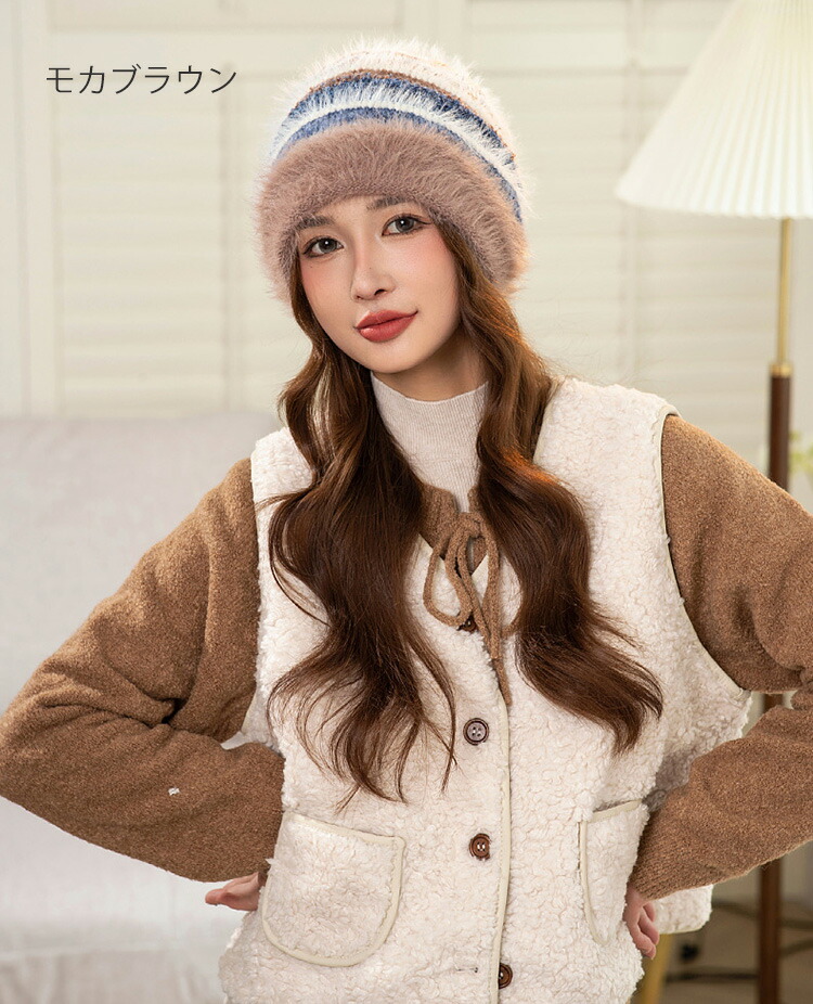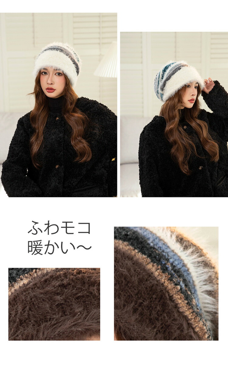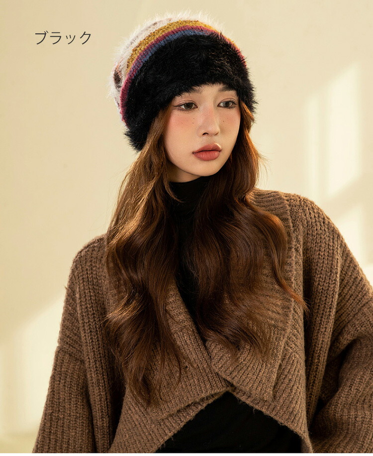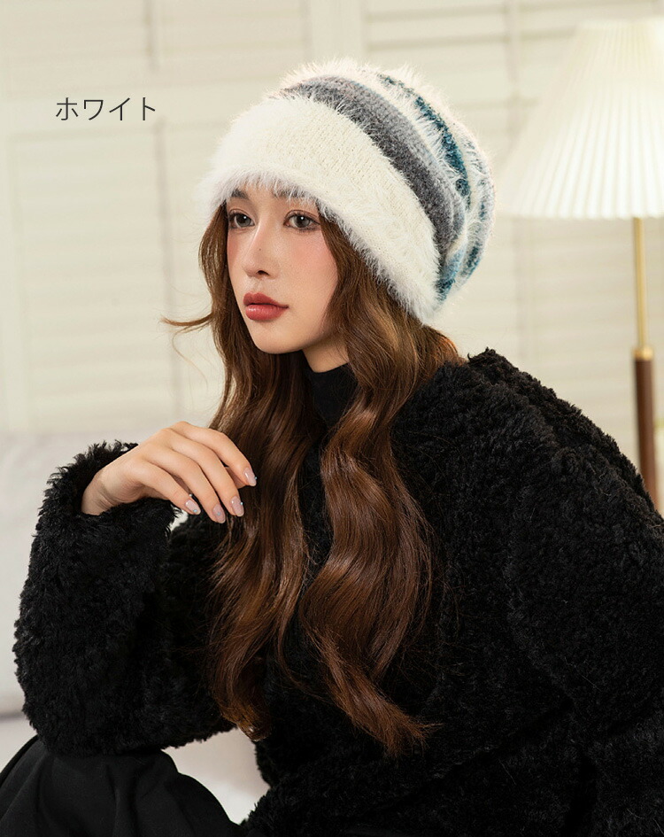 配色ニット帽 大人可愛い 防寒対策