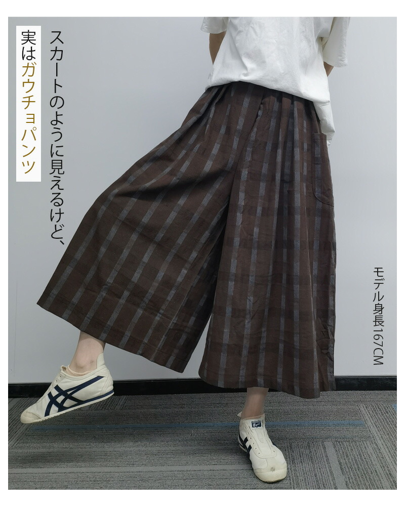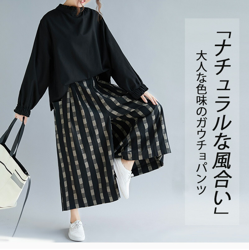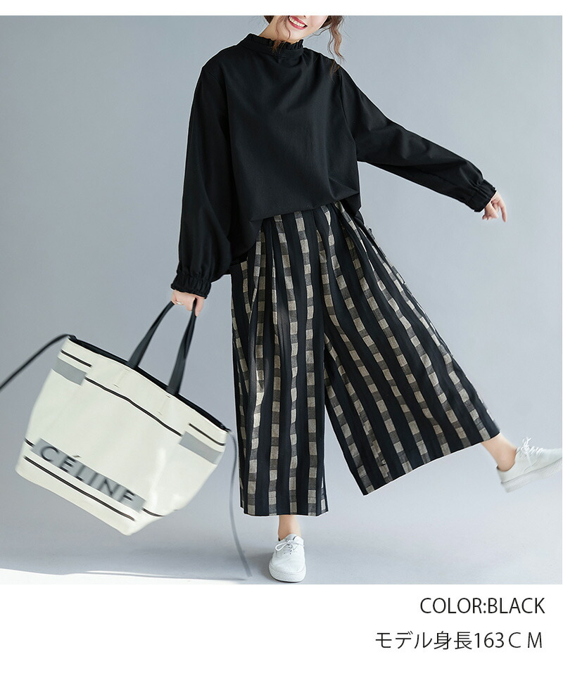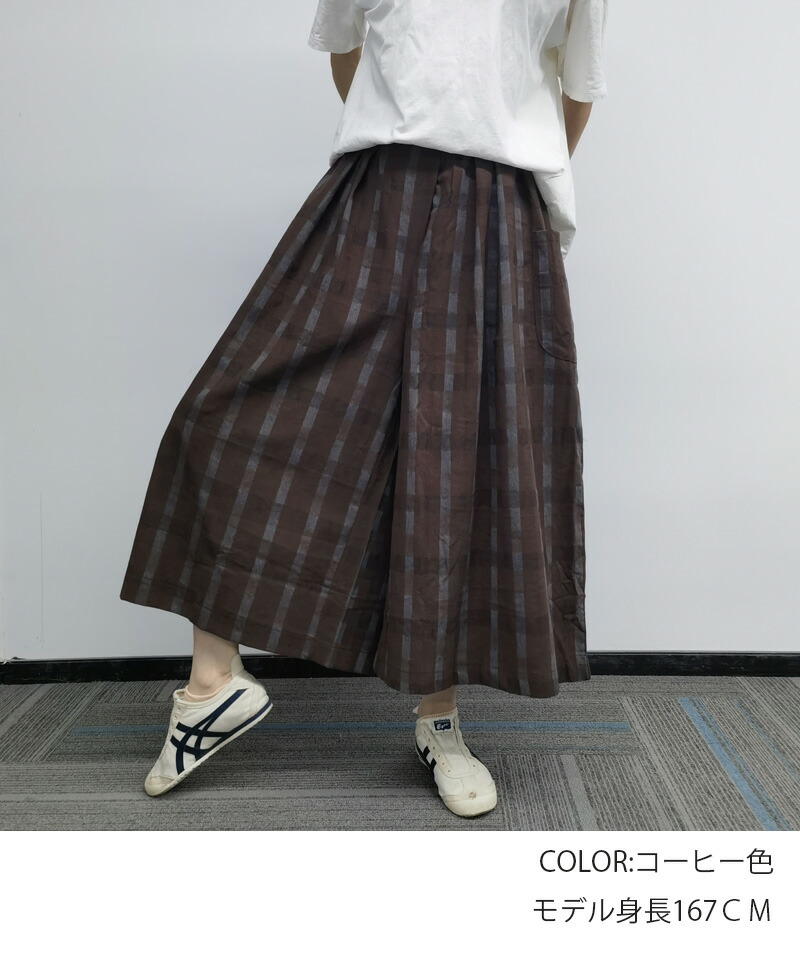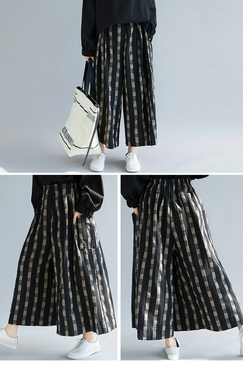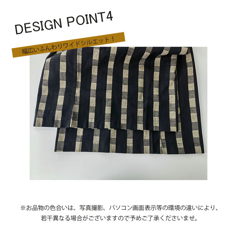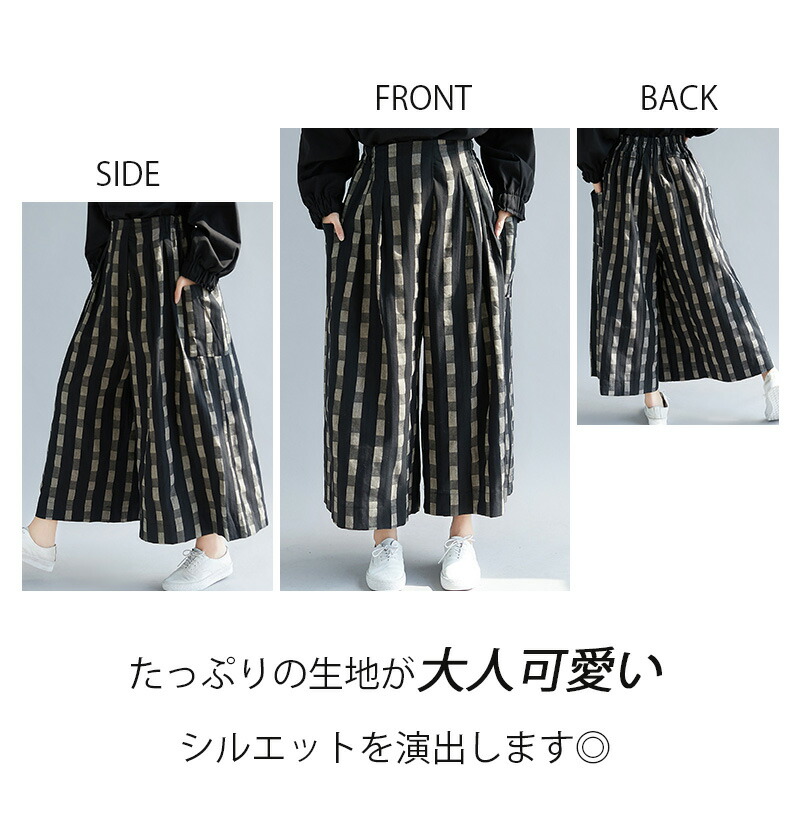 チェック柄ワイドパンツ 9分丈 体型カ