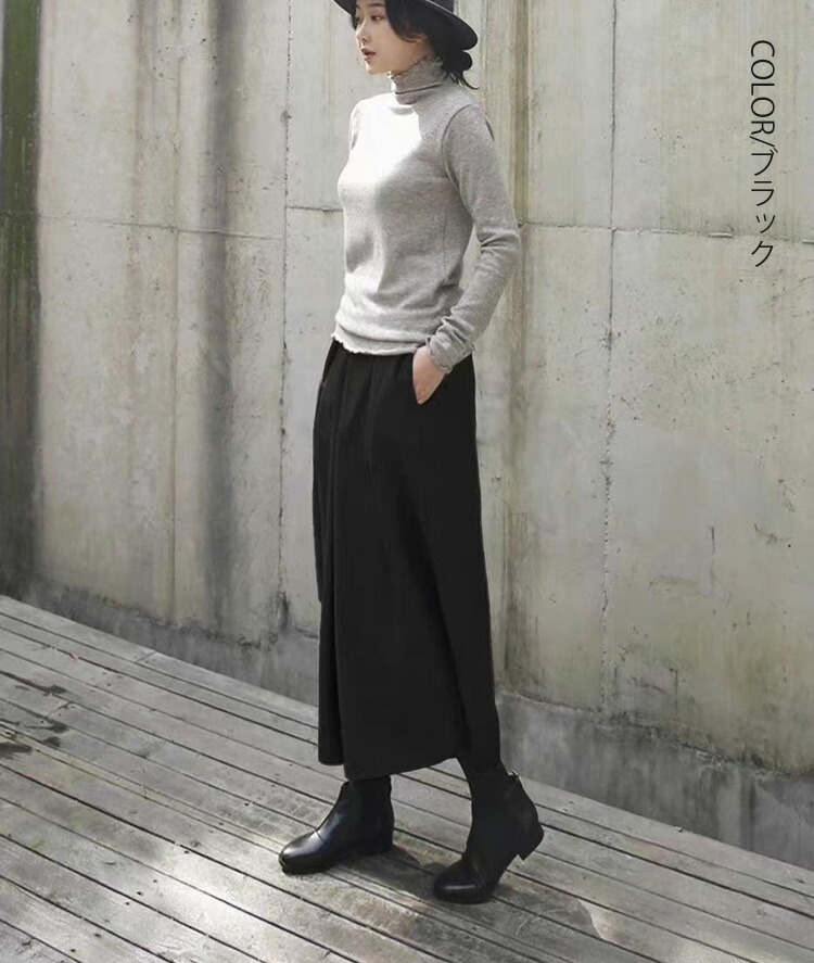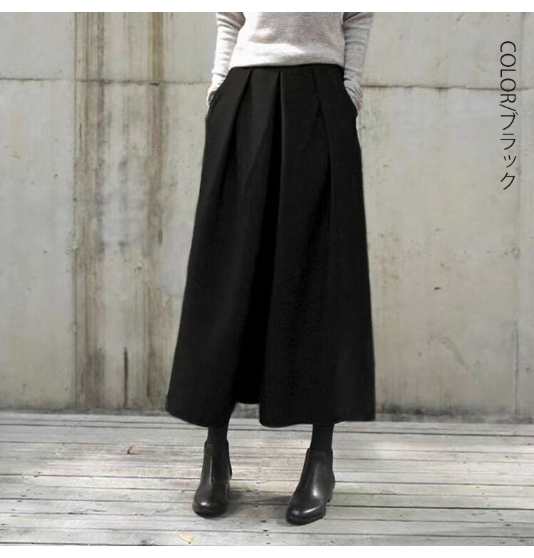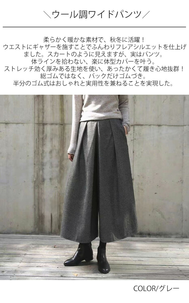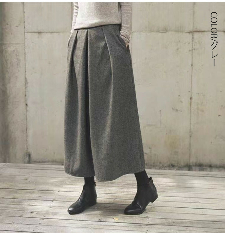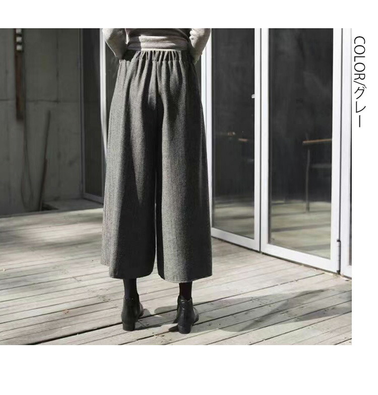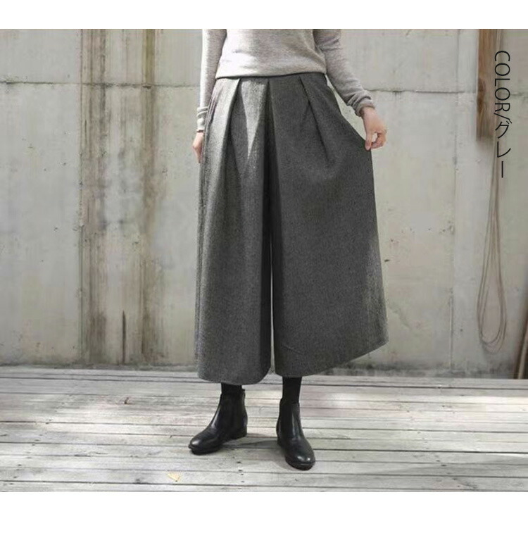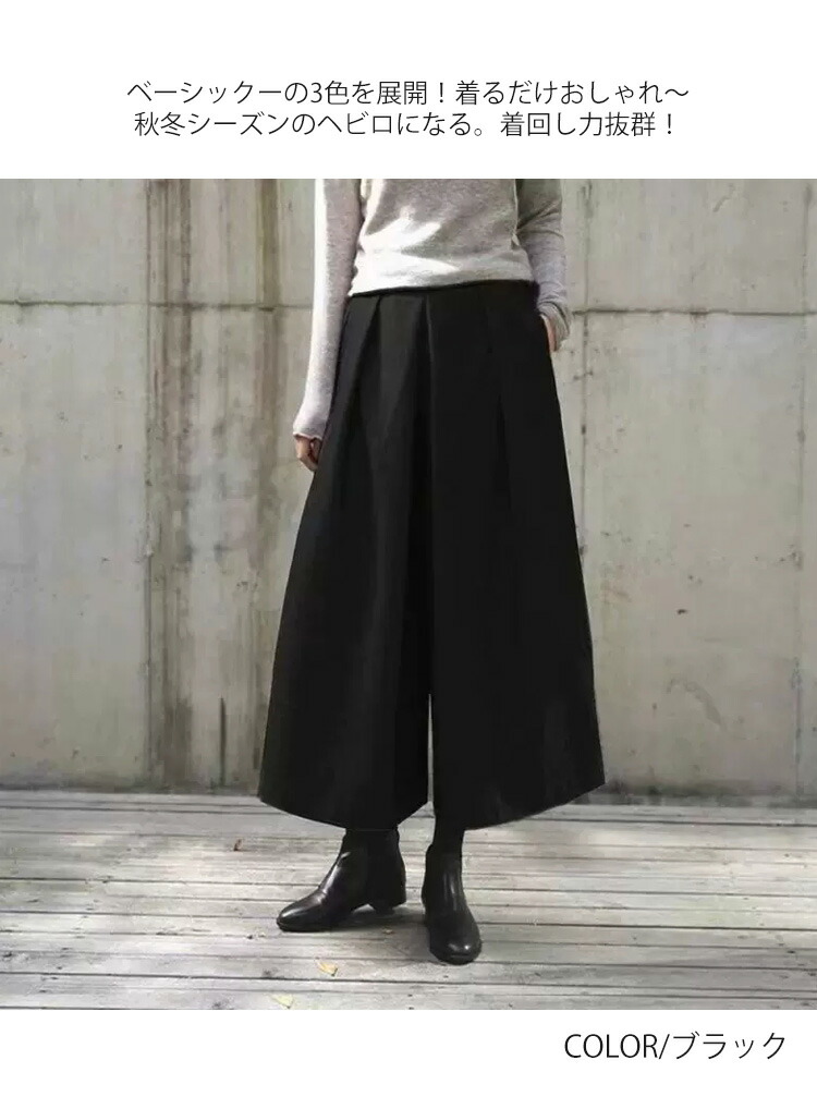 秋冬向きストレッチ効く厚手ワイドパンツ
