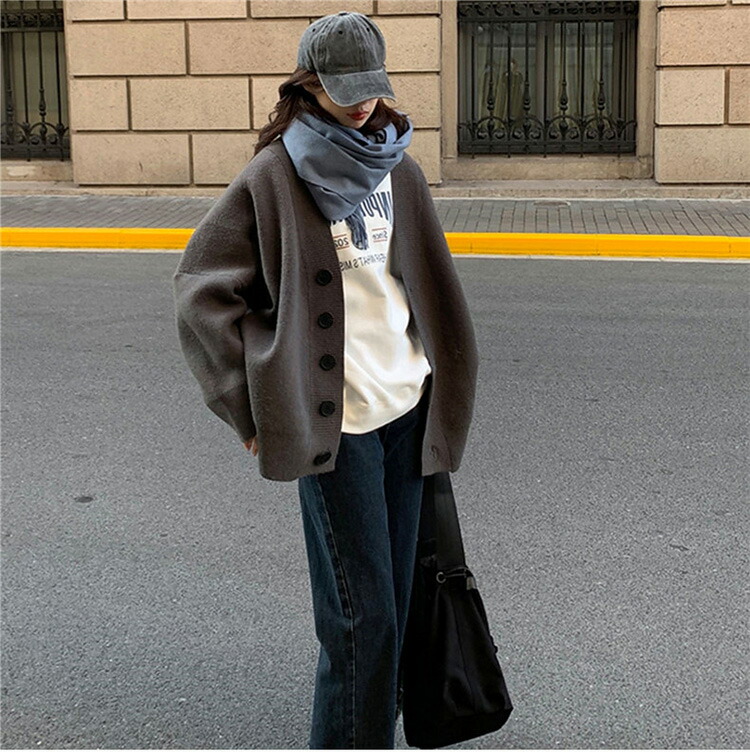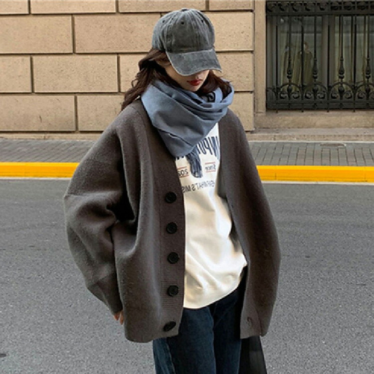 大人カジュアル雰囲気のニットカーディガ