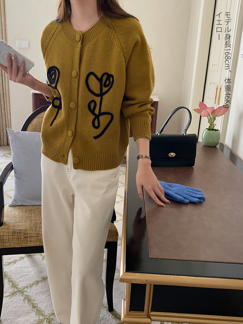 トレンドのニット花柄ラインがきれいなニ