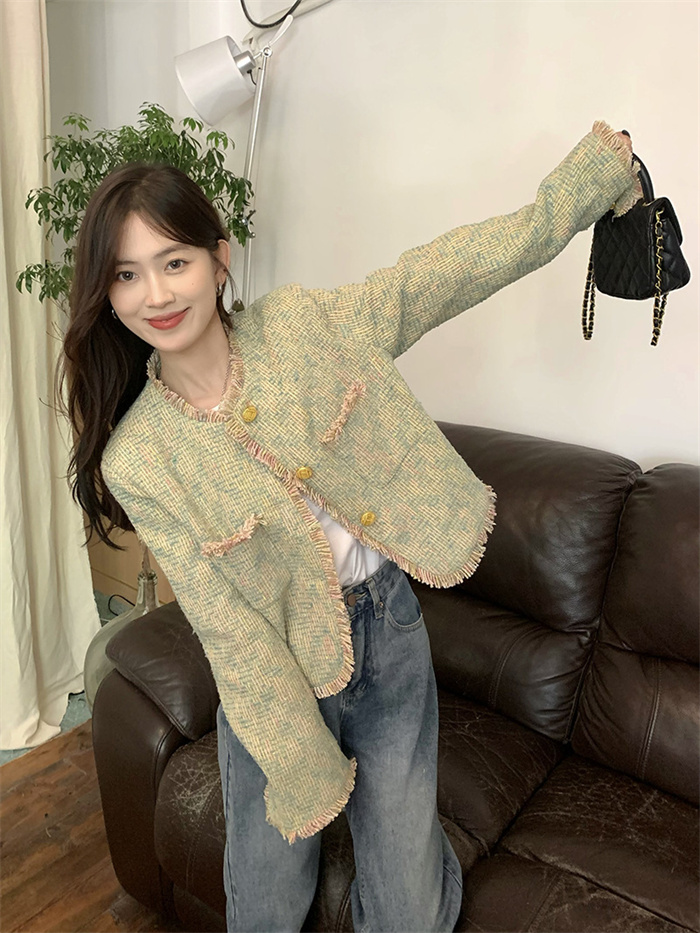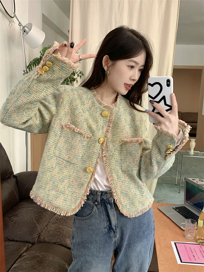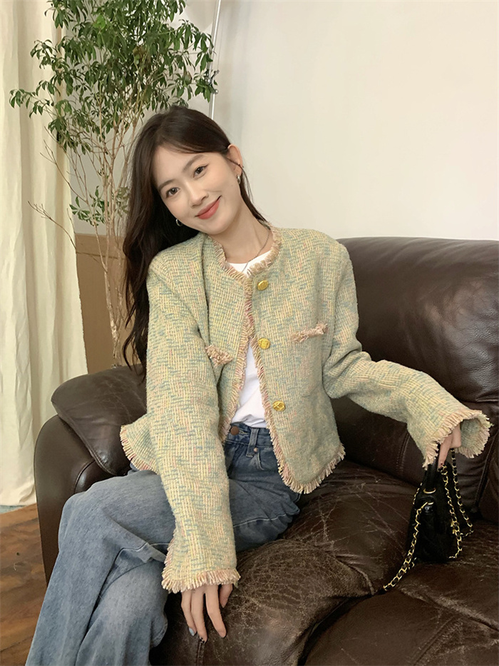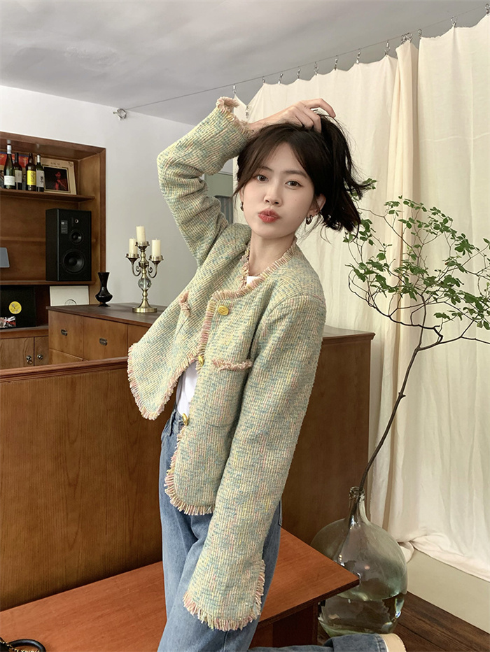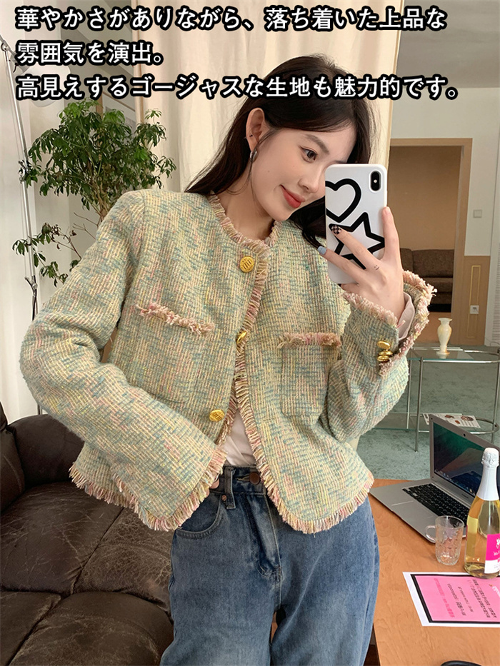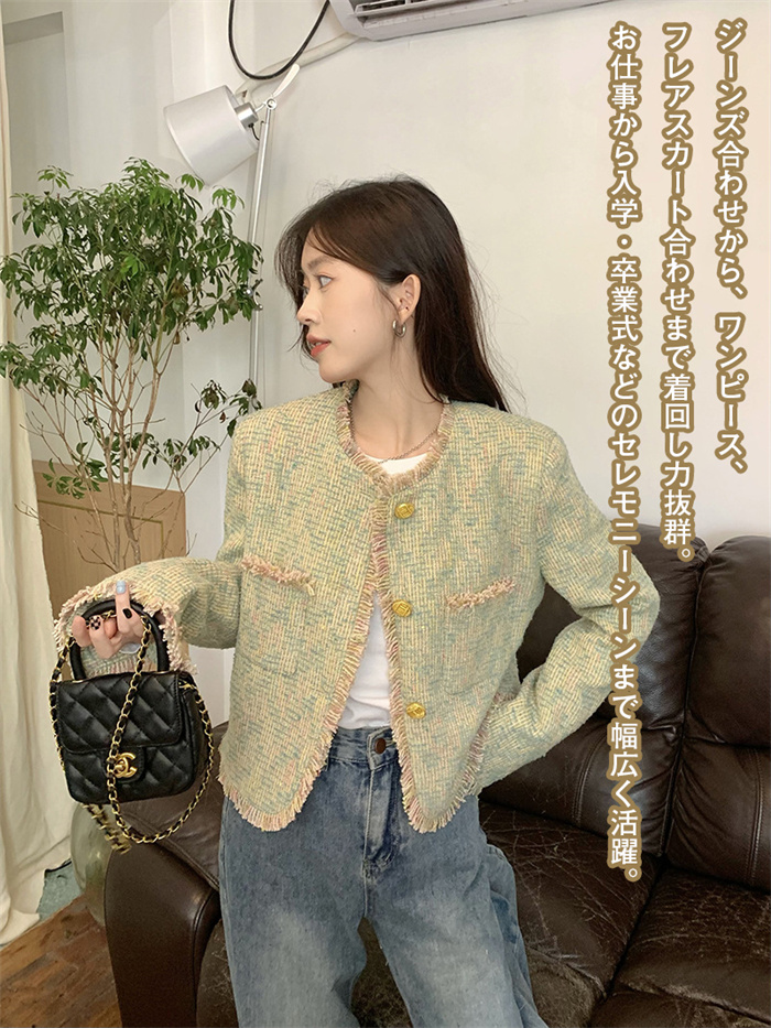 ツイードジャケット ノーカラージャケッ