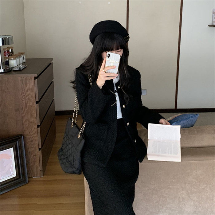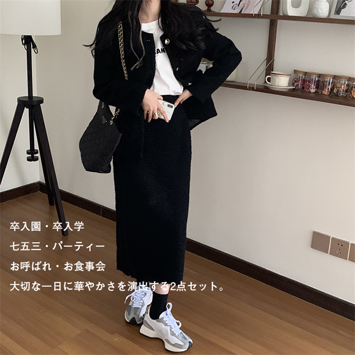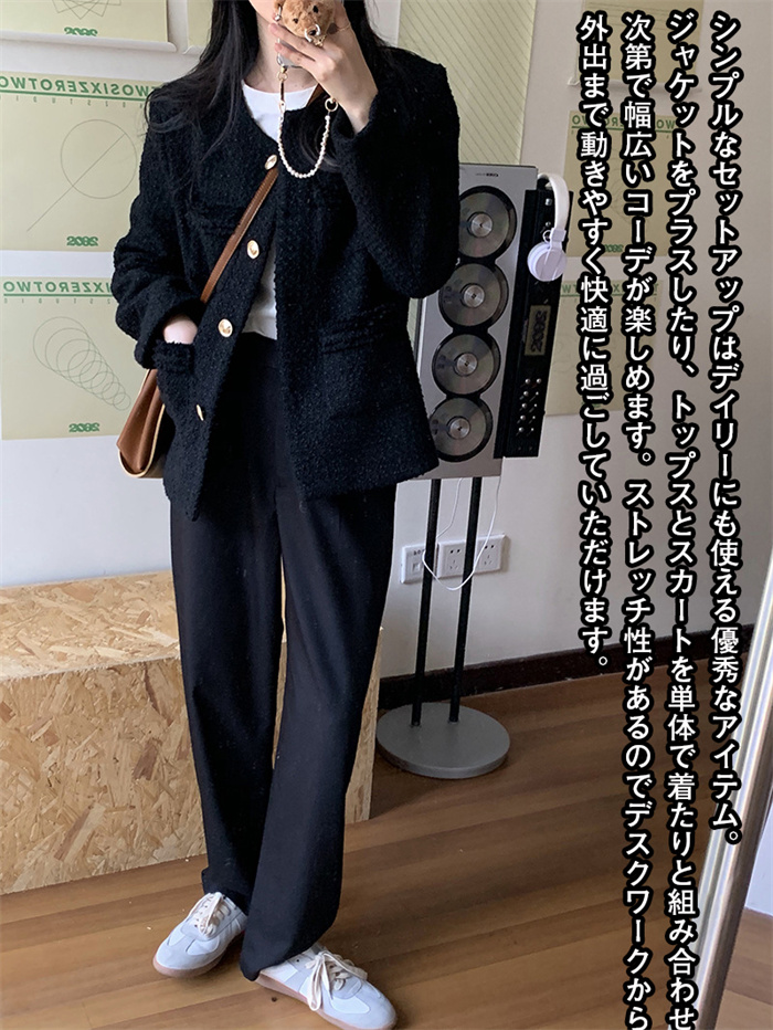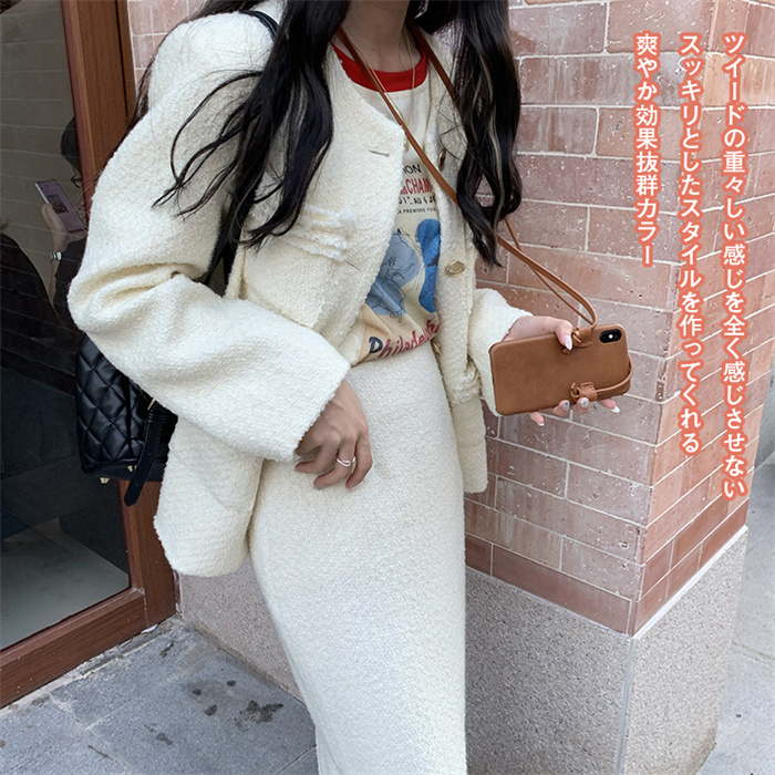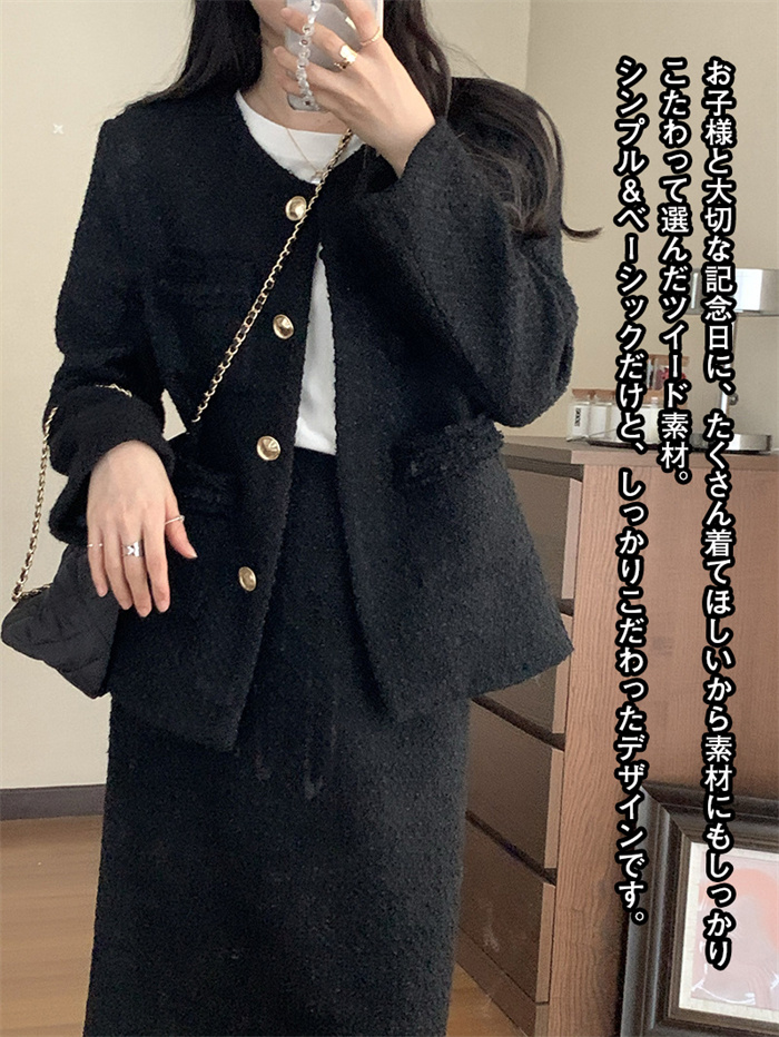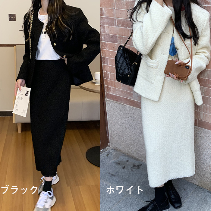 Item Information商品内容 ジャケット+スカート素材 ツイード/ポリエステルなどカラー ブラック/ホワイトサイズ ジャケット