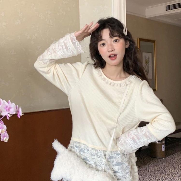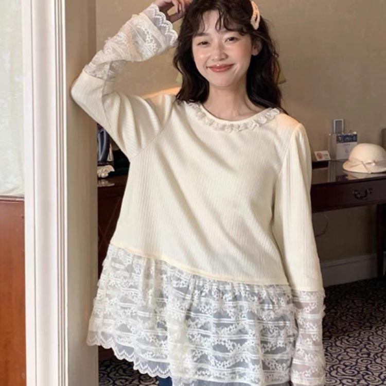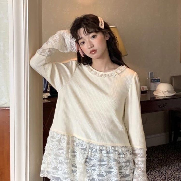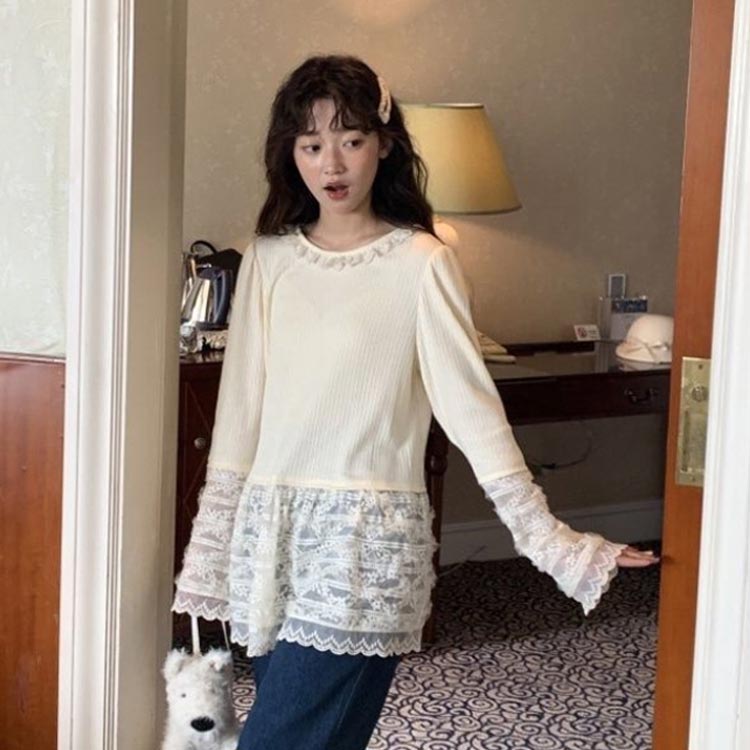 レース 袖 裾 レースインナー トップ