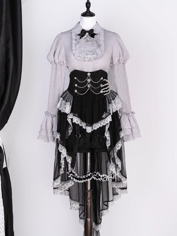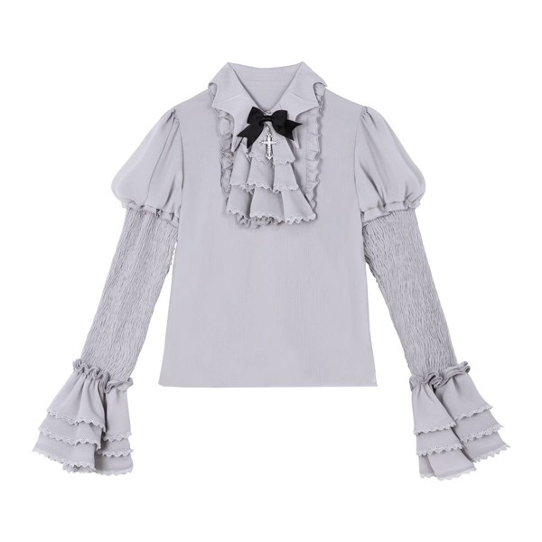 シアースリーブ ドッキングシャツ ボウタイシャツブラウス