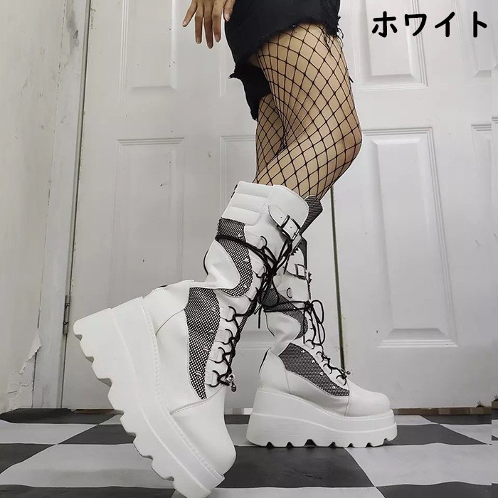 厚底 ブーツ レディース バックルスト