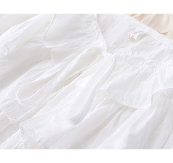 シアースリーブ ドッキングシャツ ボウタイシャツブラウス