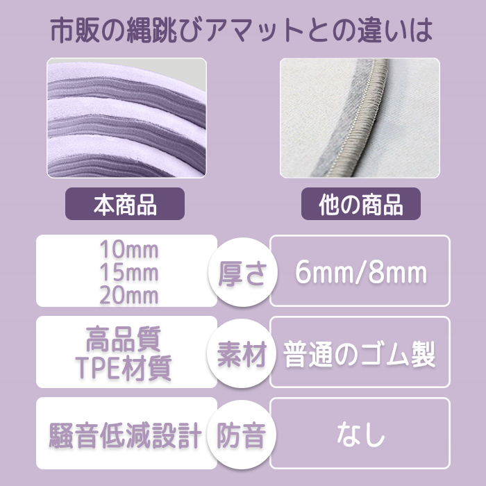 商品名:ジャンプロープマット なわとびマット ヨガ マット 縄跳びフロアマット 厚手 丸形 ジャンプロープマット 運動マット 両面滑り止め 弾力性 防音 厚め リハビリ 衝撃吸収 耐久性 軽量 携帯便利 屋内 屋外 在宅運動 ケガ予防 ダイエット 運動不足解消 10mm 15mm 20mm