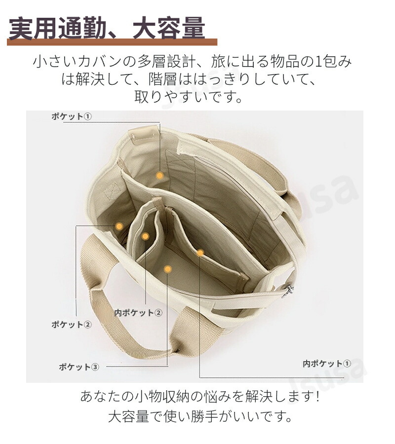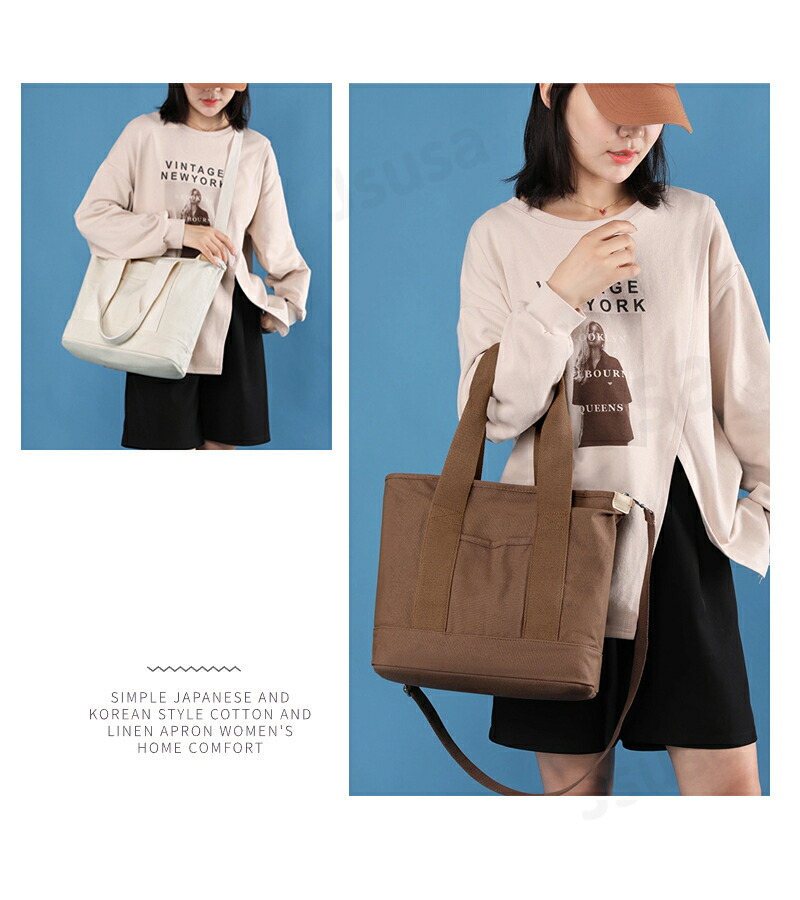 2way 大容量 肩掛け ファスナー付き 無地 おしゃれ 仕切り 多収納バッグ 小物 ブランド雑貨 バッグ レディースバッグ トートバッグ
