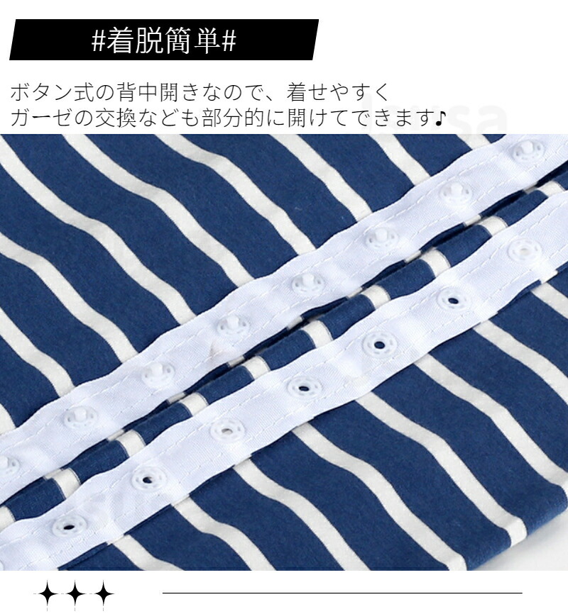 ボタン式の背中開きなので、着せやすくて、ガーゼの交換なども部分的に開けてできます。