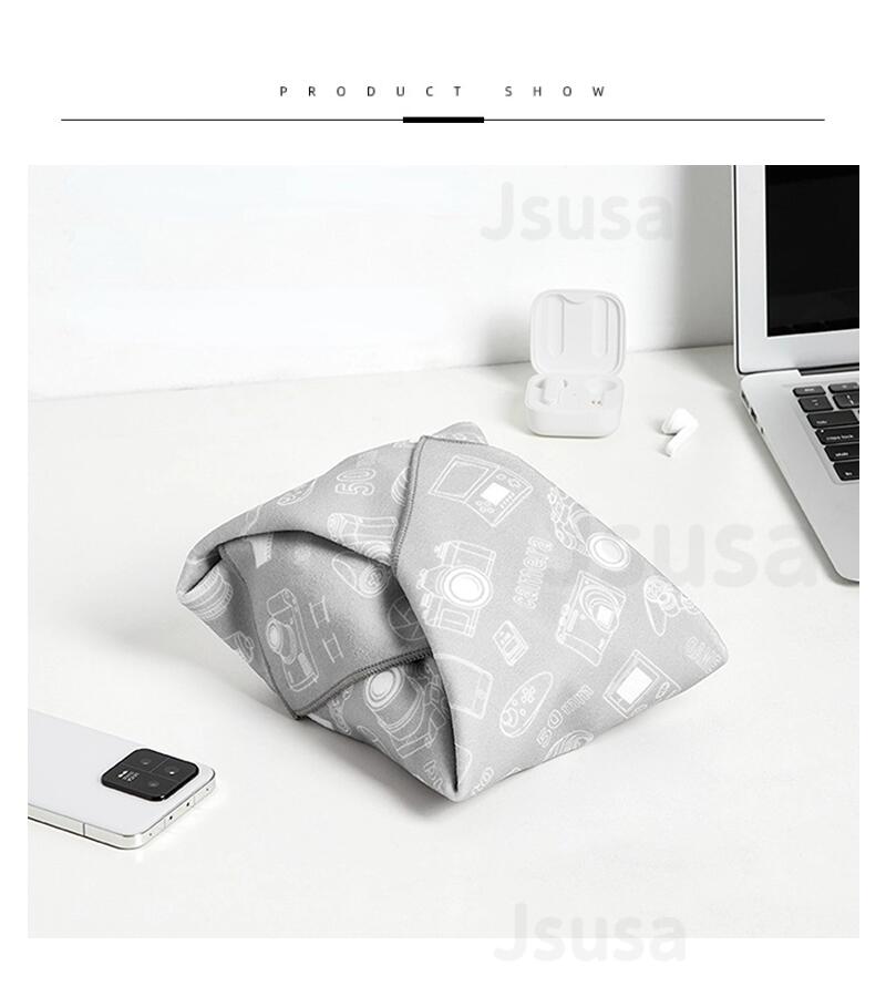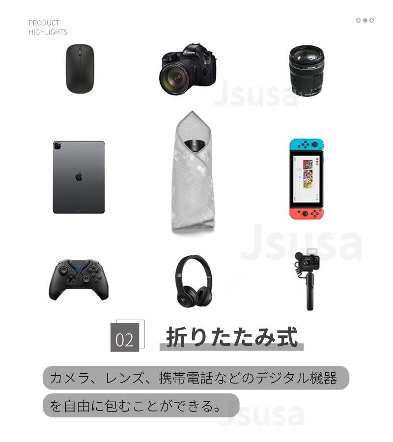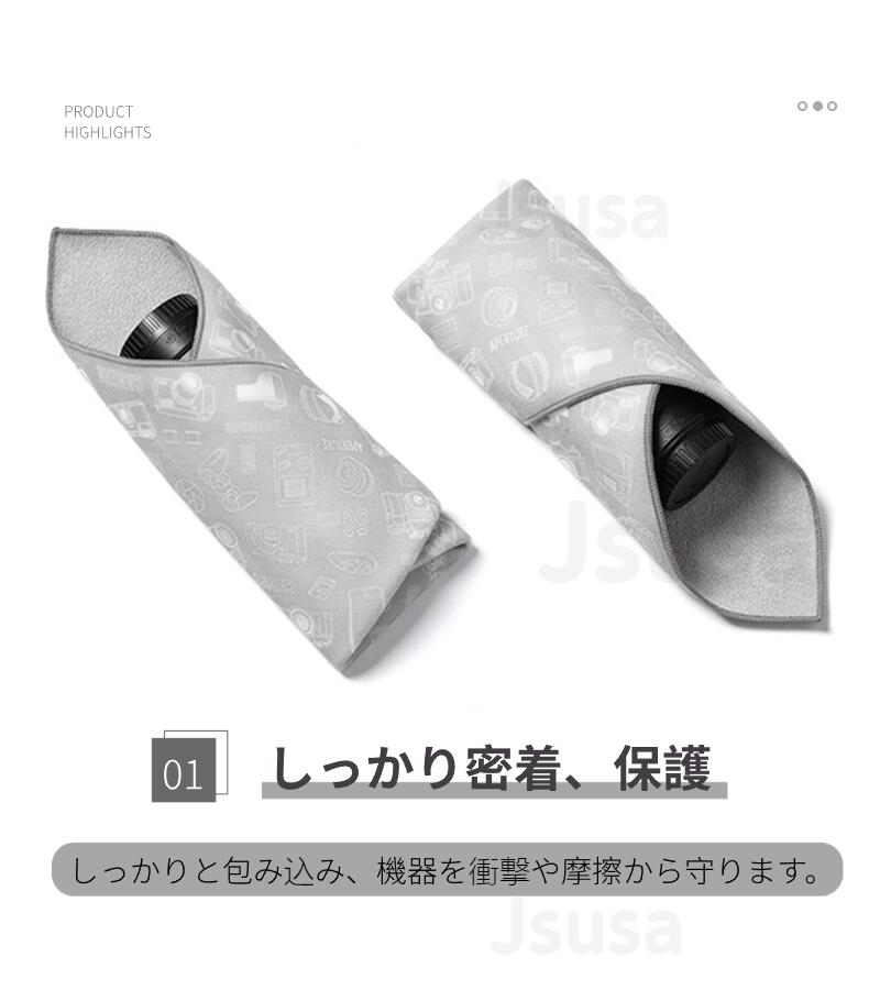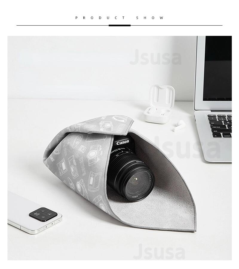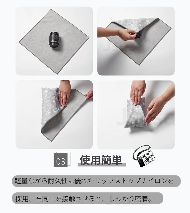 正方形のライニングクロスは、さまざまな大きさや形のカメラに対応します。