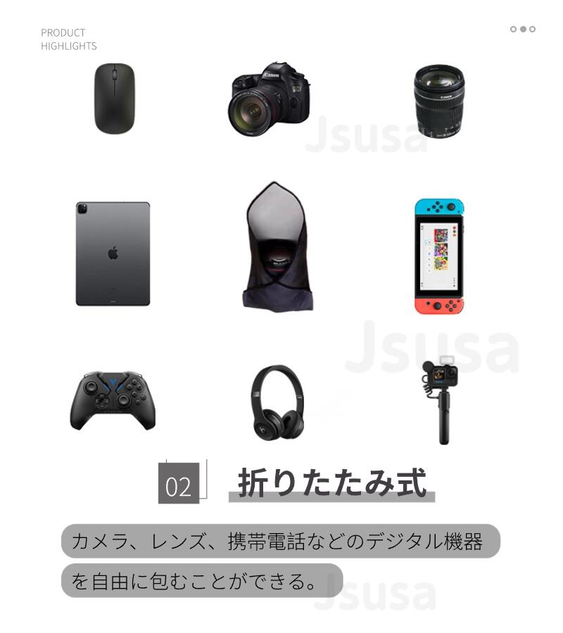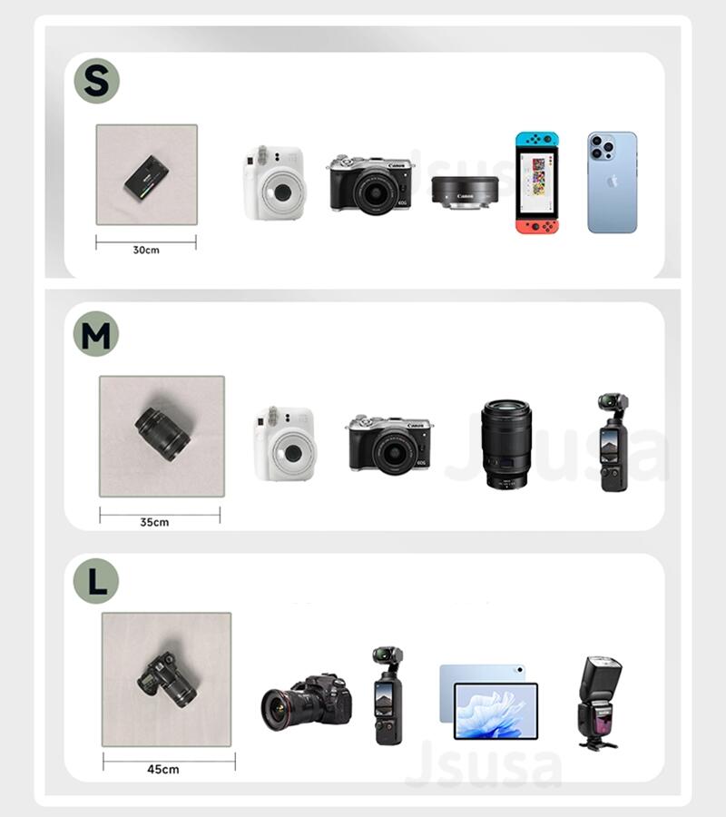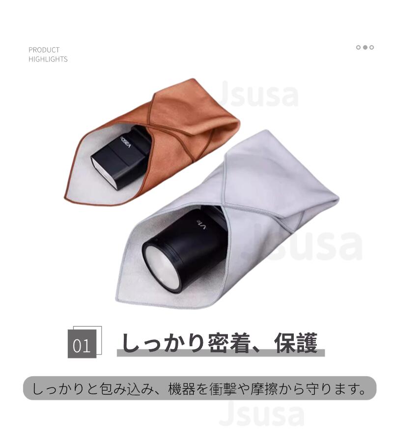 正方形のライニングクロスは、さまざまな大きさや形のカメラに対応します。