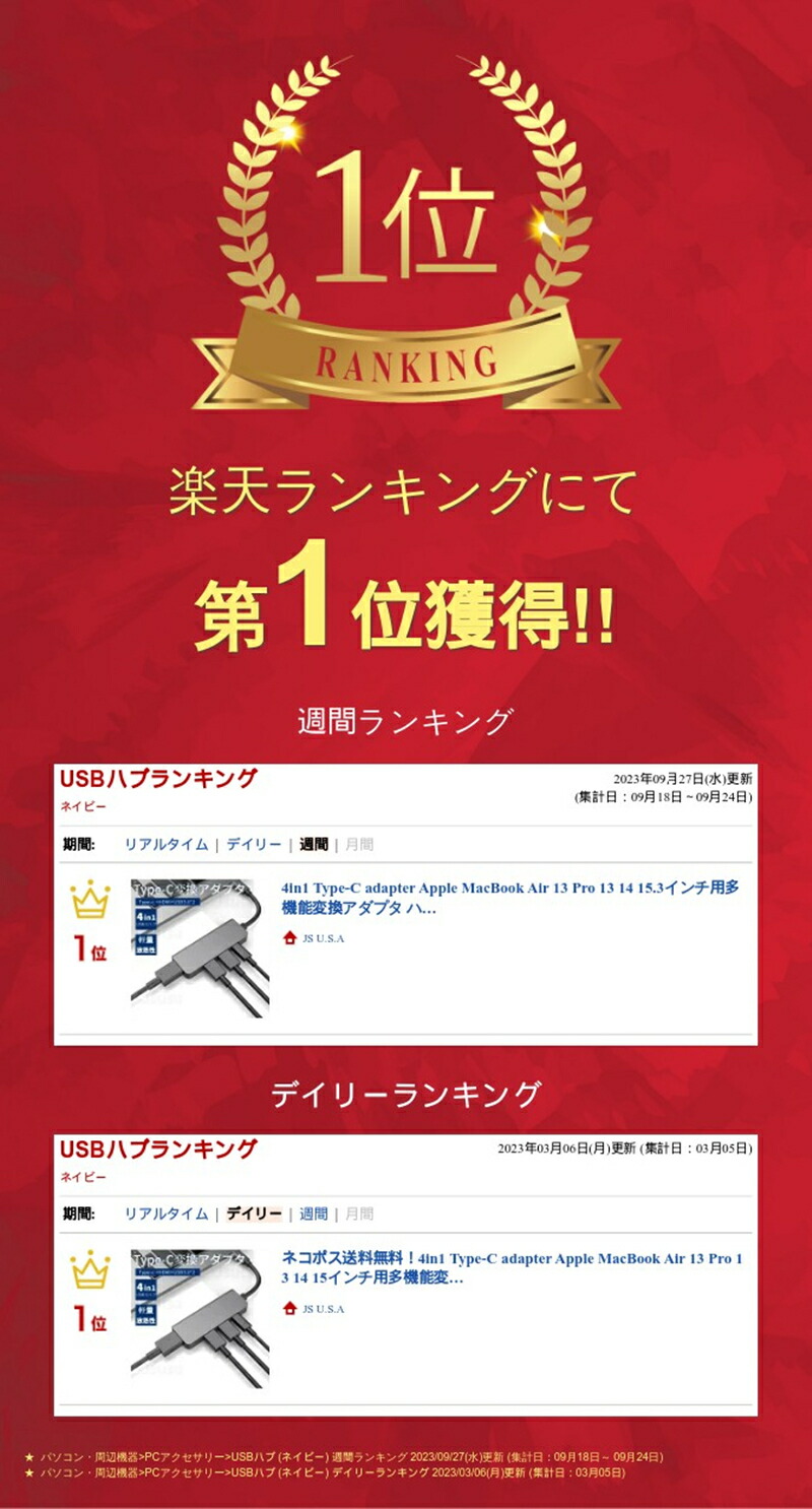 2021 2020 2019 2018 MacBook Air Pro 13 14 15用 4in1変換アダプタ 2020 Apple MacBook Air 13用高速 4K対応 多機能 マルチUS