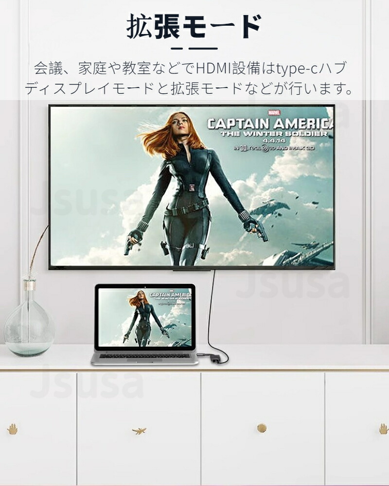 会議、家庭や教室などでHDMI設備はtype-cハブ ディスプレイモードと拡張モードなどが行います。