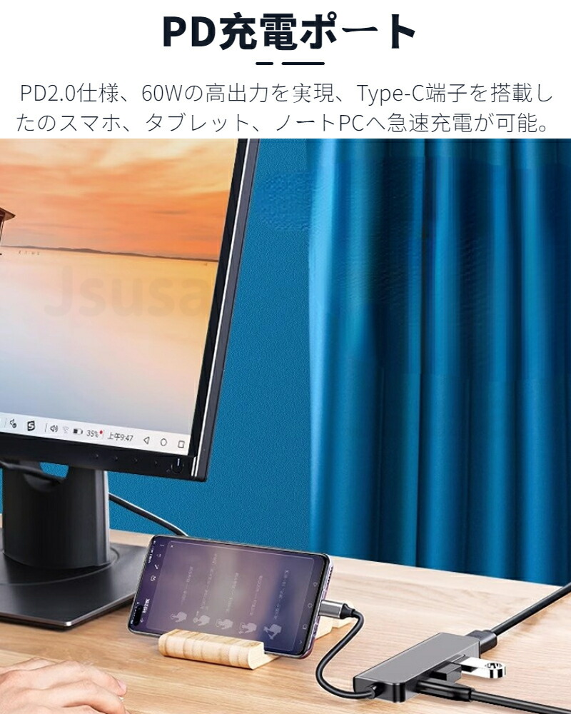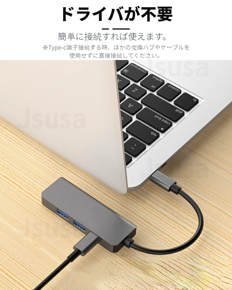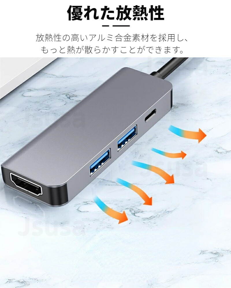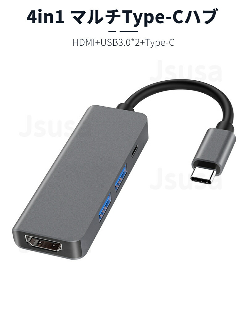 ●4in1 USB-C ハブ!Type-CからType-Cポートx1、USB3.0ポートx2、4K HDMIポートx1への変換が可能なアダプターハブです。