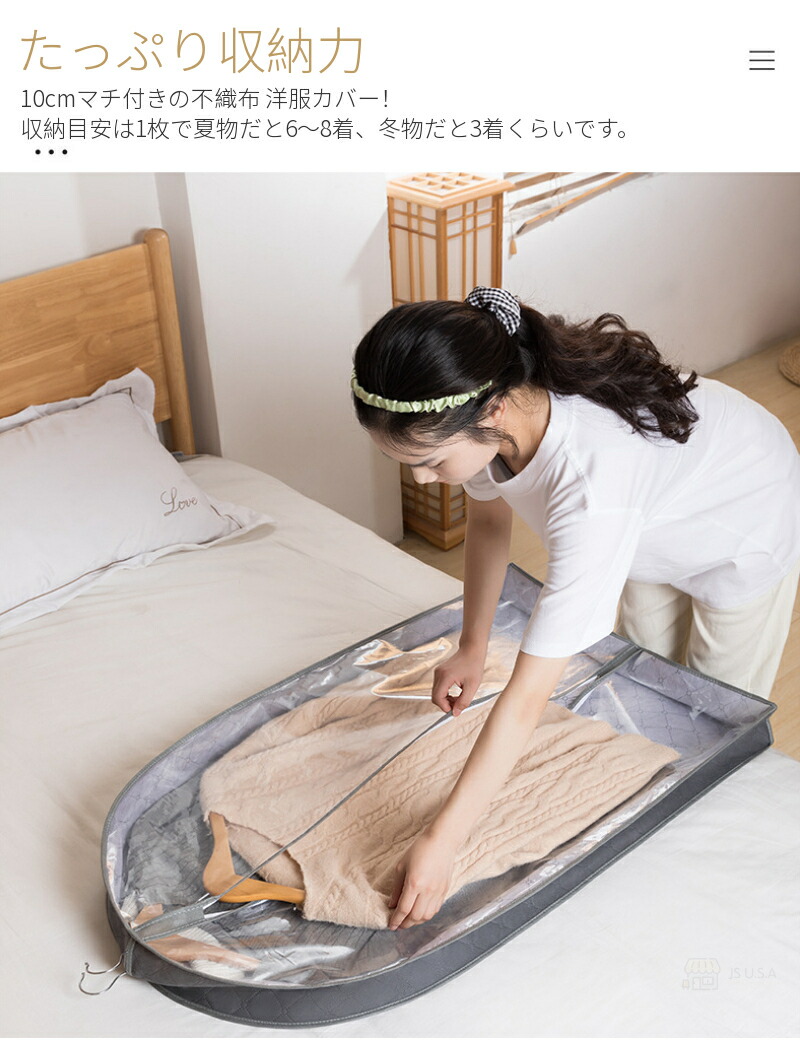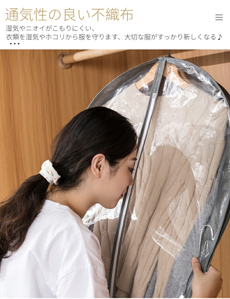 通気性の良い不織布製で作られ、柔らかくて丈夫、スーツカバー全体を覆うことができるだけでなく、湿気やほこりから衣類を保護することができます。