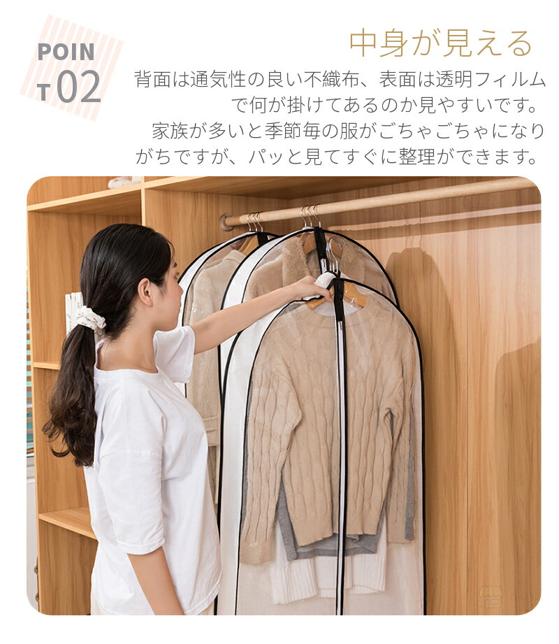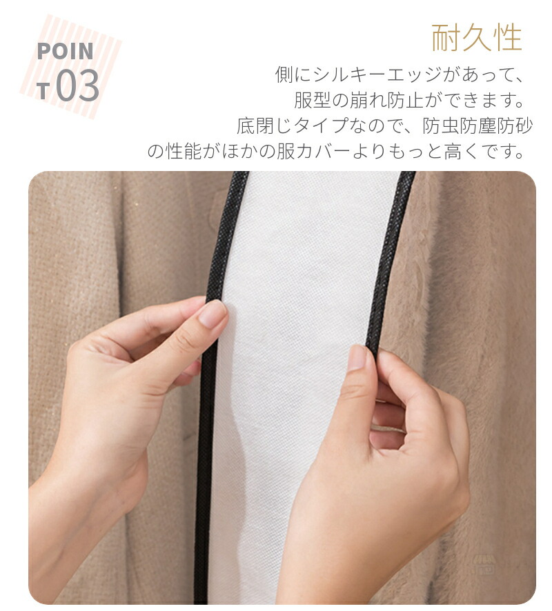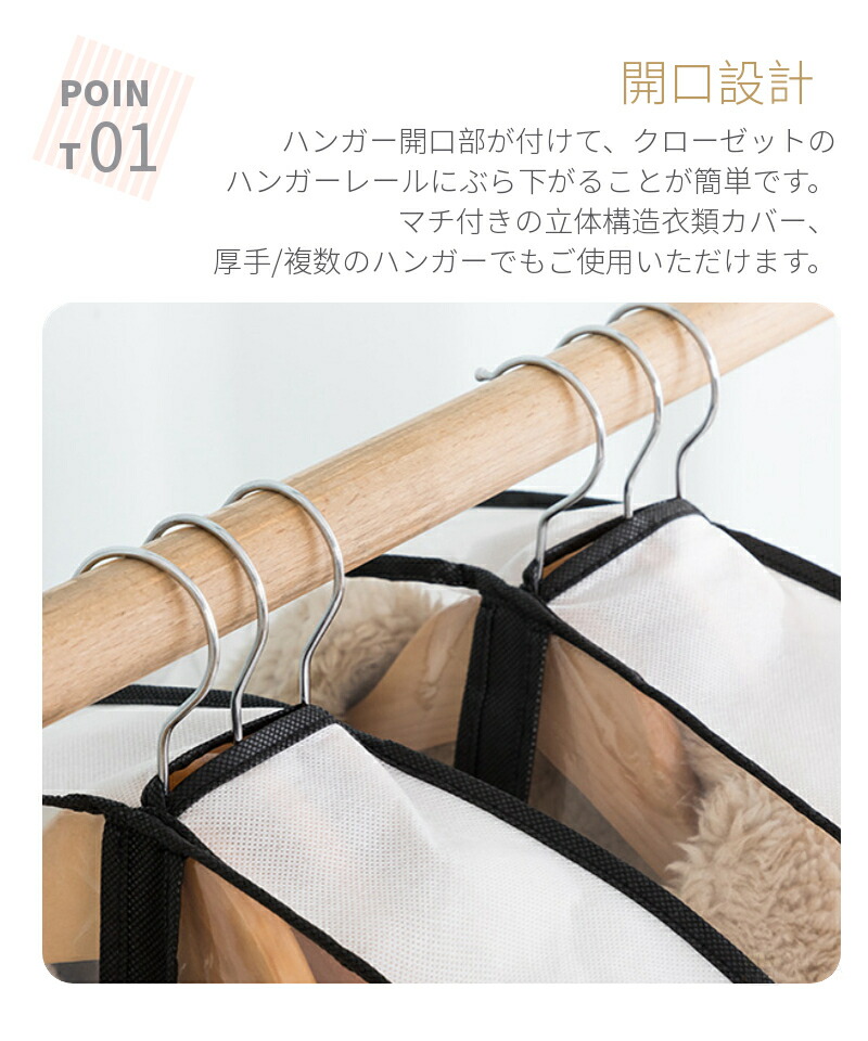 マチ付きの立体構造衣類カバー、厚手/複数のハンガーでもご使用いただけます。