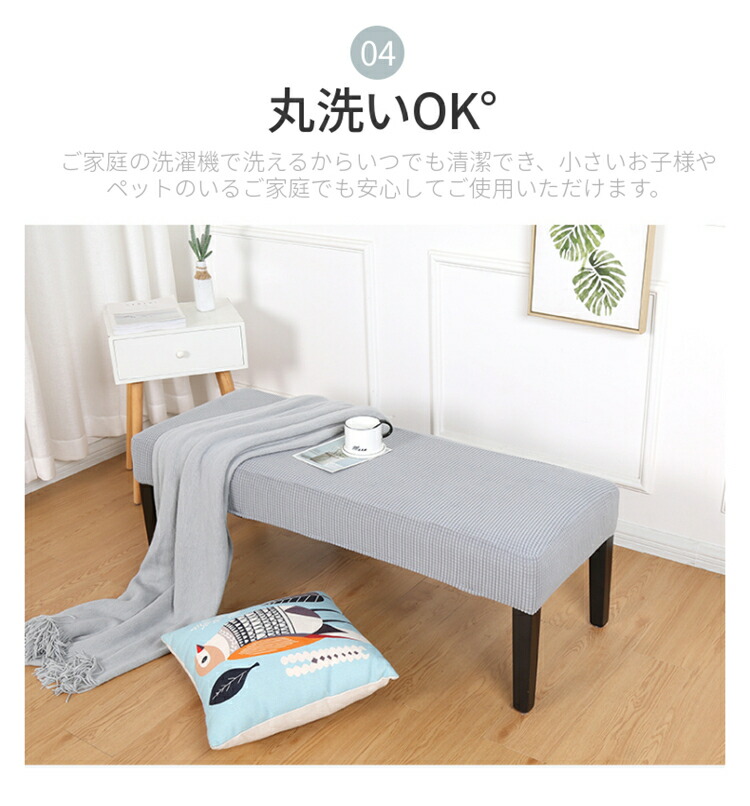 縦横に程よく伸縮するストレッチ素材が、ダイニングベンチやロングスツールなどの長椅子にぴったりフィット!