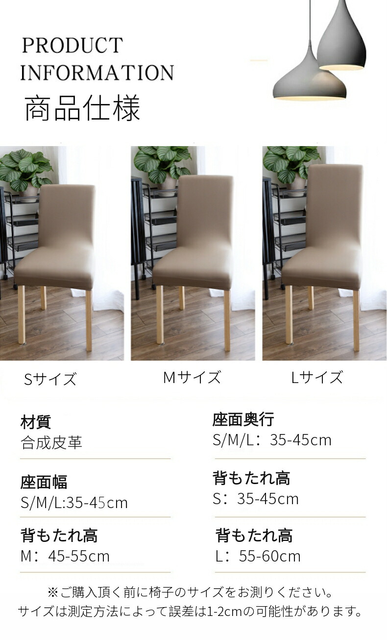 ご注文する前に、是非自分の椅子のサイズを測ってから、参考サイズに合わせてください。
