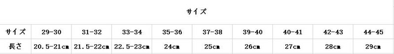 サイズ : 29-30#20.5-21cm 31-32#21.5-22cm 33-34#22.5-23cm 35-36#24cm 37-38#25cm 39-40#26cm 40-41#27cm 42-43#28cm 44-45#29cm