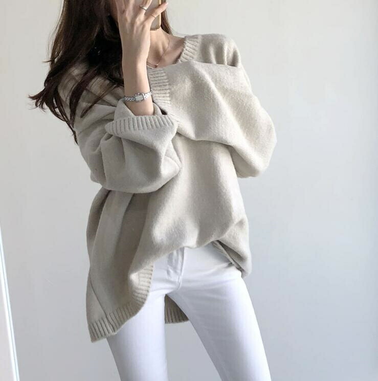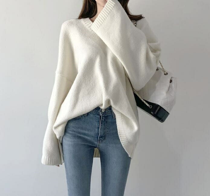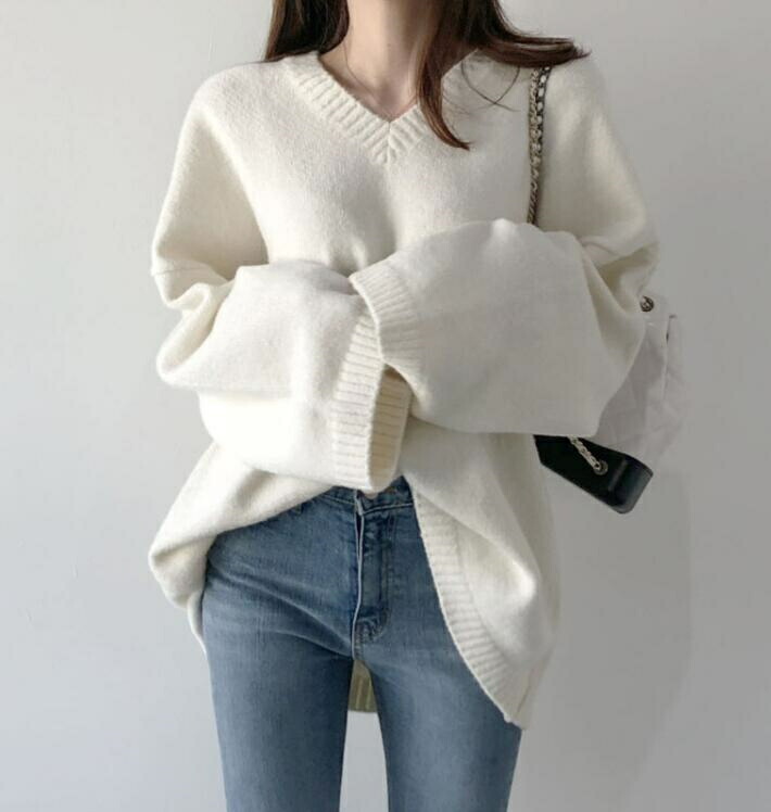 商品名 ニット セーター ドルマン Vネック ゆるニット レディース チュニック ロング トップス 長袖 ストレッチ 体型カバー オーバーサイズ カジュアル おしゃれ 無地 春秋冬 着痩せ ゆったり 韓国風 カジュアル 30代 50代 40代 プレゼント 普段着 大人 上品 送料無料