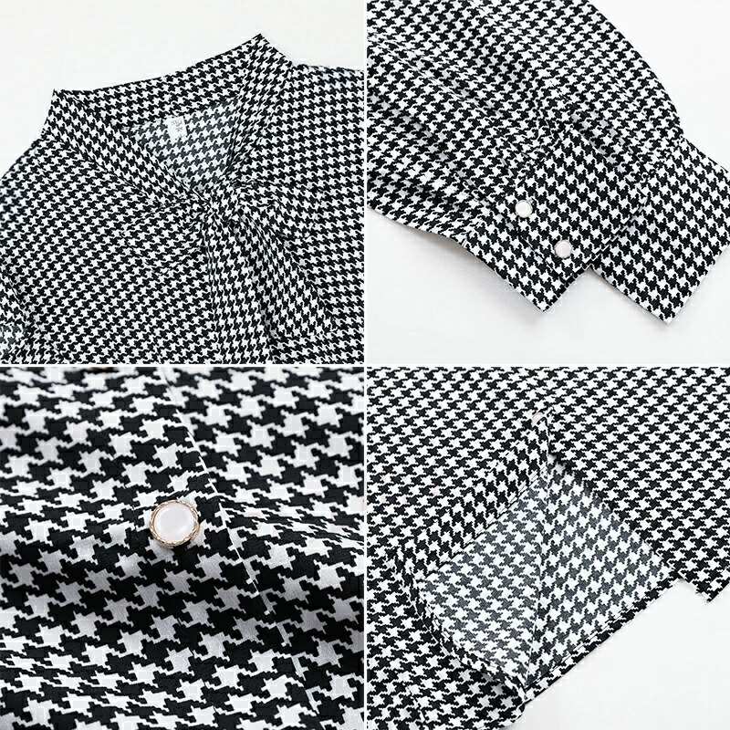 商品名 ボウタイ リボン ブラウス 千鳥格子 ボウタイブラウス レディース 長袖 トップス リボンブラウス 千鳥柄 総柄 フリル 肩 シャツブラウス 前開き オフィス オフィスカジュアル フェミニン レトロ 春 夏 秋 韓国 ファッション 送料無料