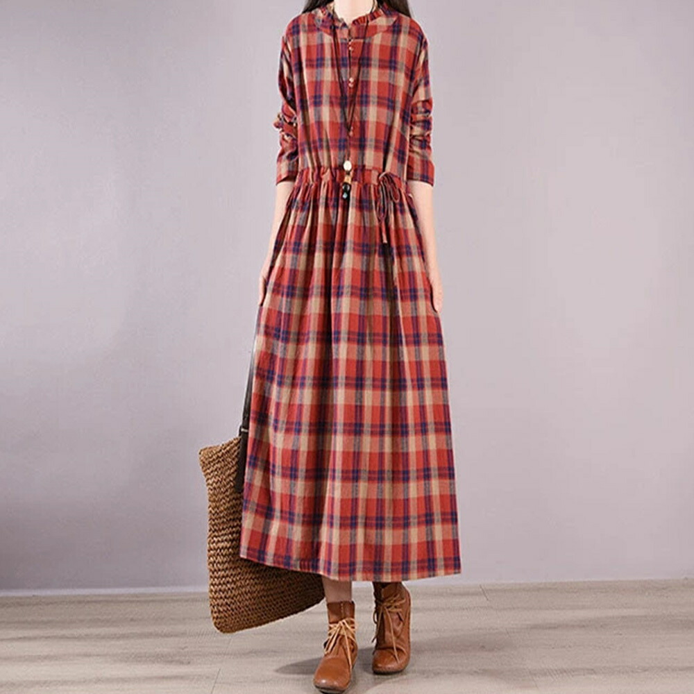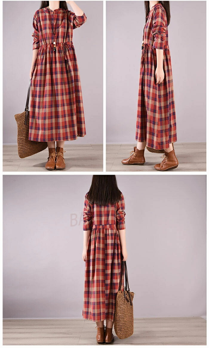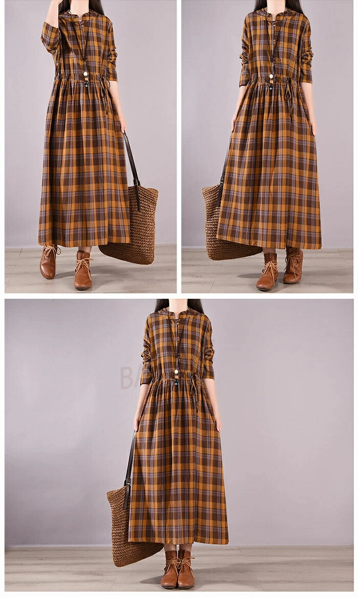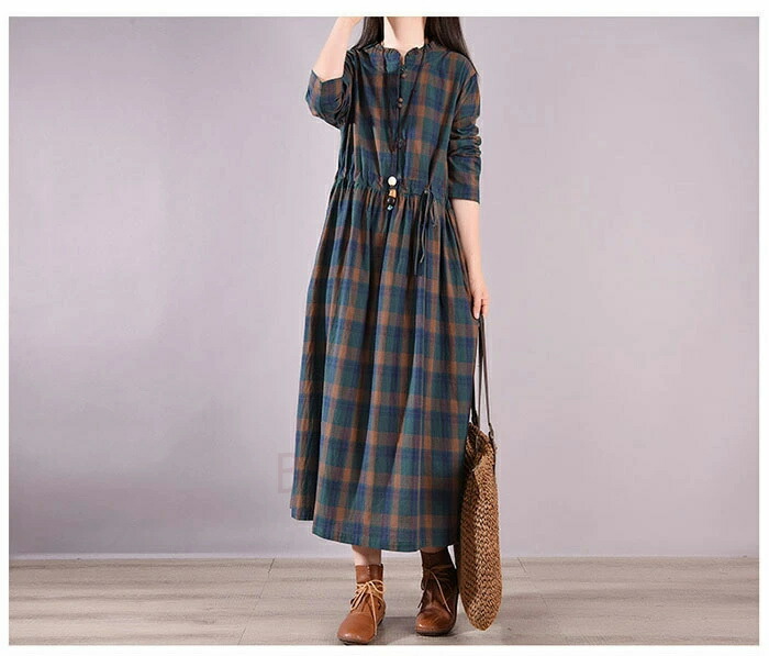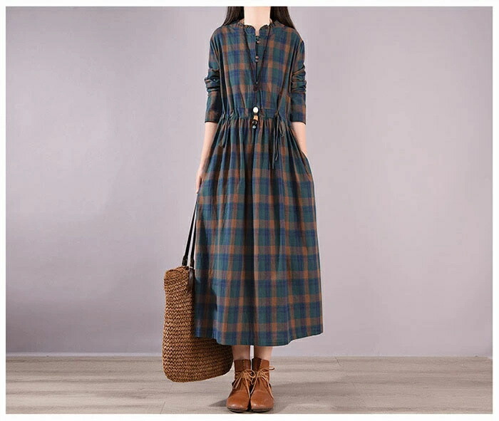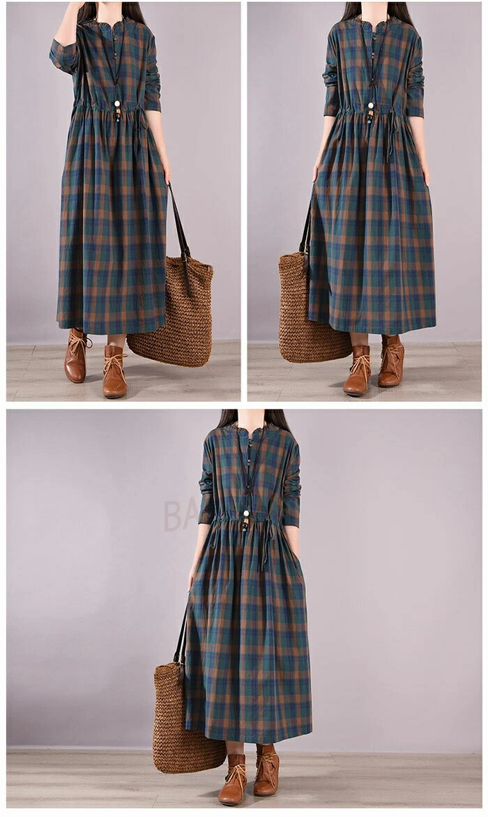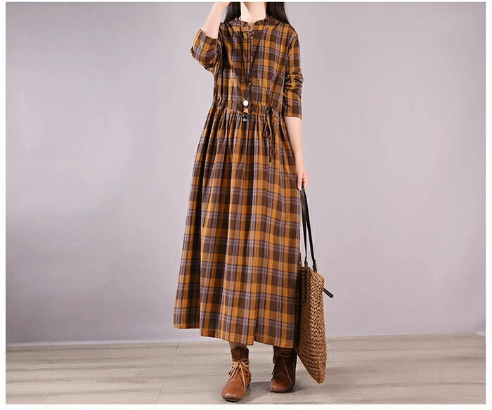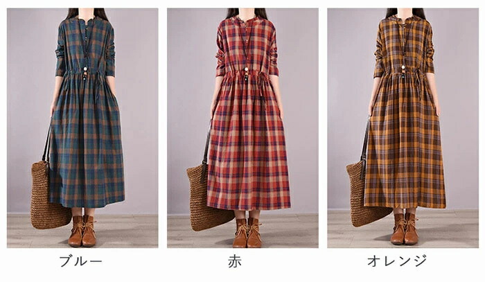 商品名 ワンピース レディース 長袖 ロングワンピース チェック ロングワンピ ロング丈ワンピース マキシワンピース ミモレ ミモレ丈ワンピース ミモレ丈 ギンガムチェック ゆったり おしゃれ きれいめ 着痩せ 体型カバー 大人 可愛い 森ガール 春秋冬 送料無料