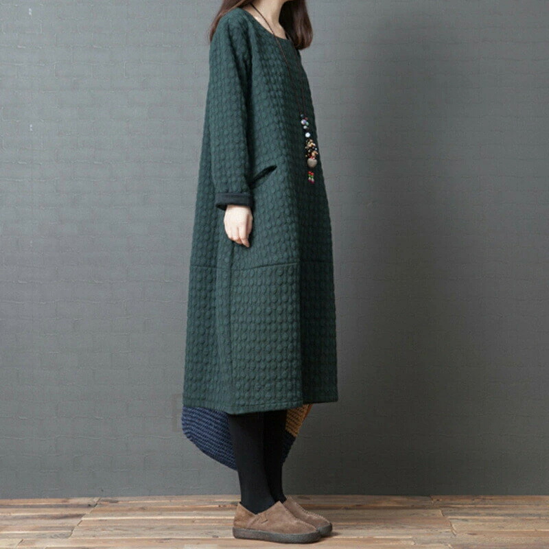 商品名 ワンピース 秋冬 レディース ロングワンピース ロング 中綿 かわいい 可愛い きれいめ Aライン 大人 綿 コットン ミディアム丈 膝丈 リゾート カジュアル ミモレ丈 ワンピ 長袖 大きいサイズ 春 夏 森ガール 体型カバー ゆったり ナチュラル シンプル 無地