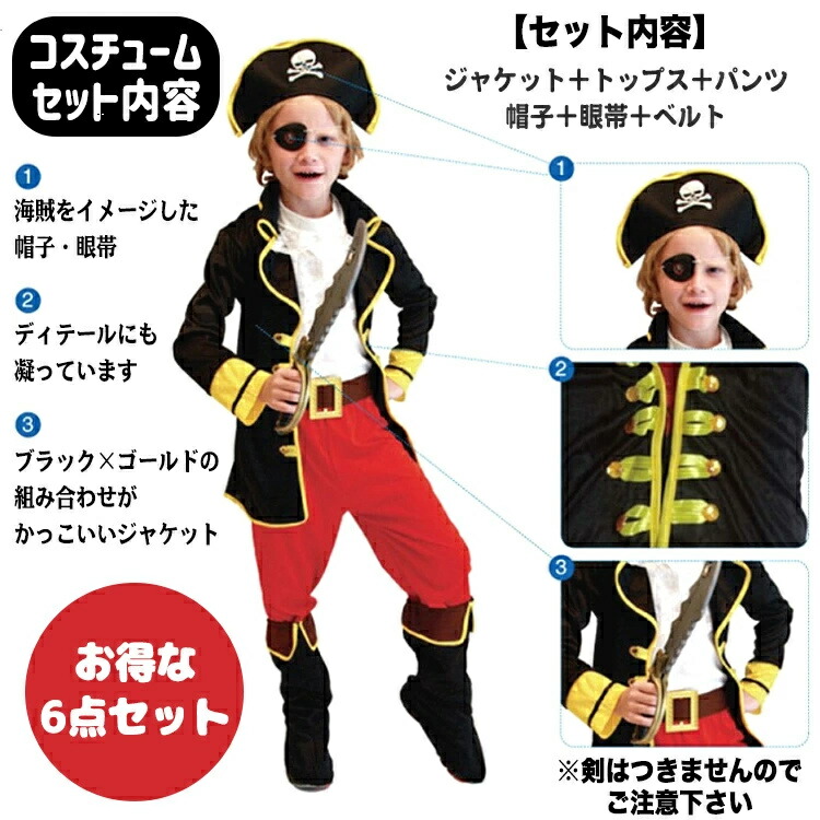 商品名 ハロウィン 衣装 子供 コスプレ 仮装 男の子 女の子 海賊 バイキング 海賊風 子ども キッズ こども ドレス ブラック 眼帯 かっこいい 男児 女児 なりきり ハロウィン衣装 コスチューム クリスマス パーティー 送料無料