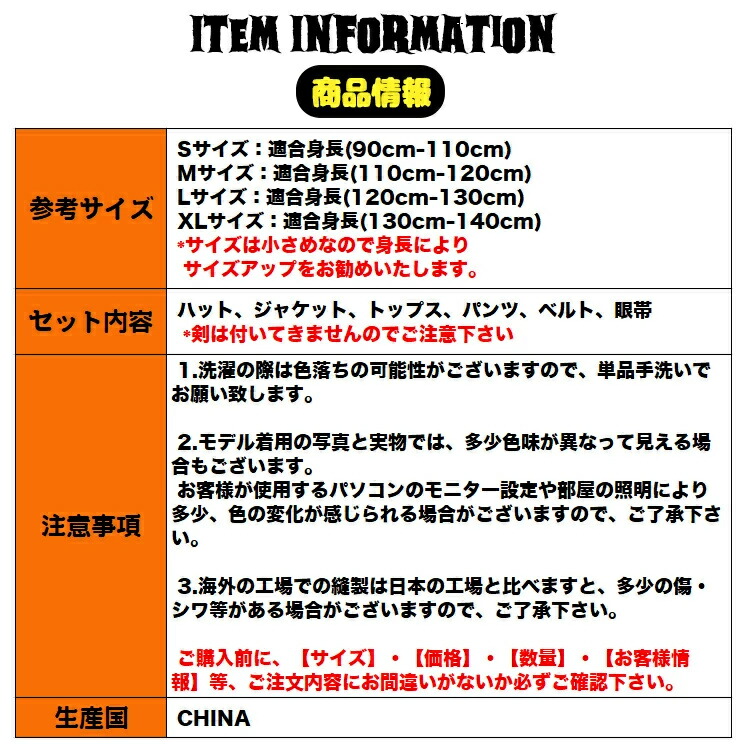 サイズ(cm):S、M、L、XL S:おすすめ身長:90-110CM