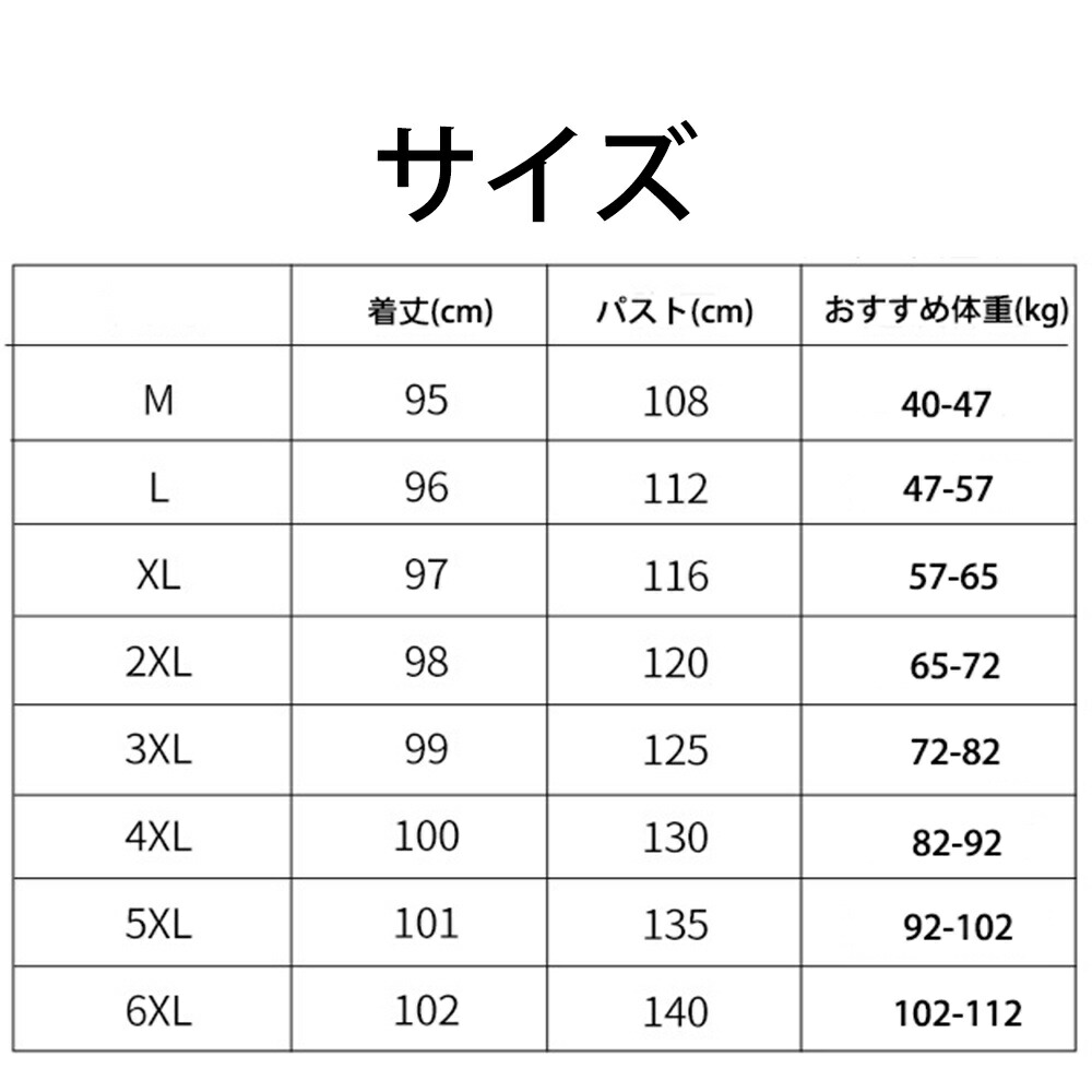 サイズ(cm):M、L、XL、XXL、XXXL、XXXXL、XXXXXL、XXXXXXL M:パスト:108CM 着丈:95CM おすすめ体重:40-47KG