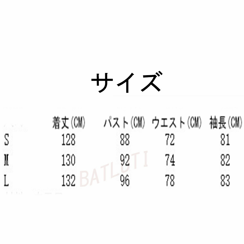 サイズ(cm):S、M、L S:パスト:88cmウエスト:72cm着丈:128cm袖長:81cm