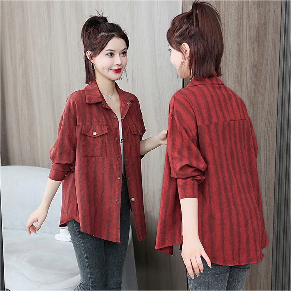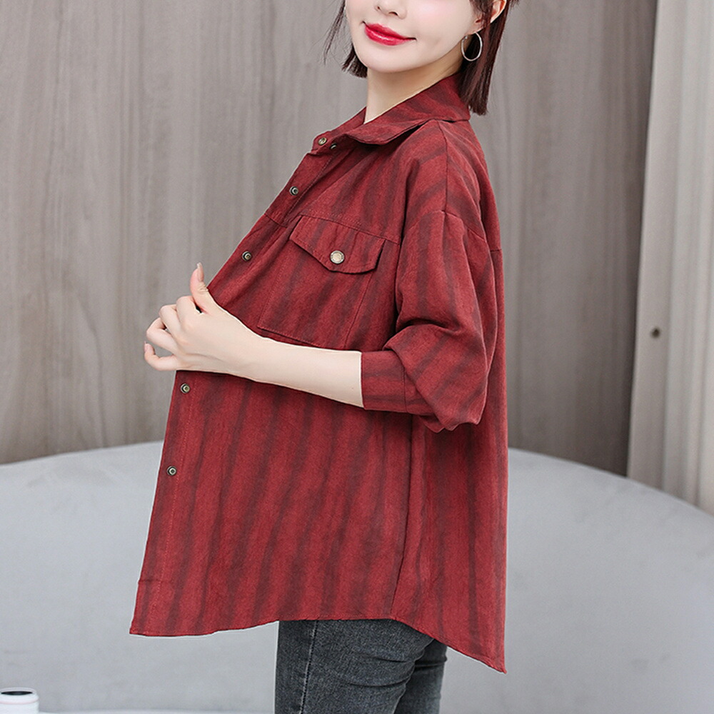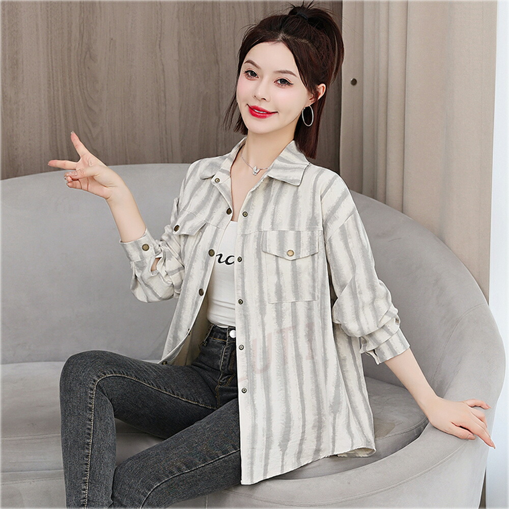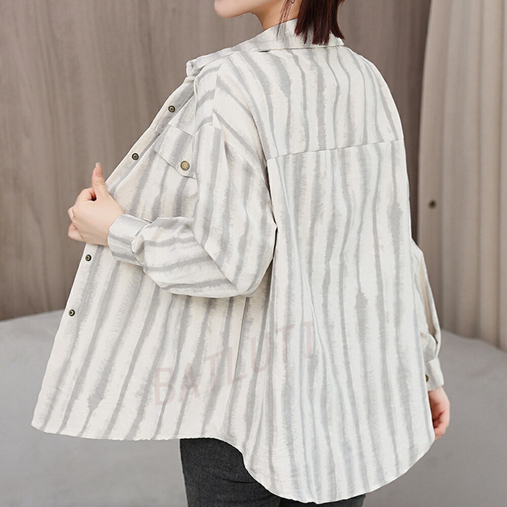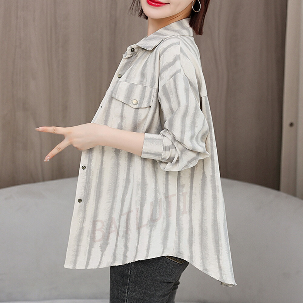 商品名 ブラウス レディース ストライプ柄 シャツ シンプル トップス シャツブラウス ゆったり さわやか ロング丈 おしゃれ 大人 上品 オフィス カジュアル 春 秋 韓国 痩せる効果 お出かけ上品 韓国ファッション 20代 30代 40代 50代 送料無料